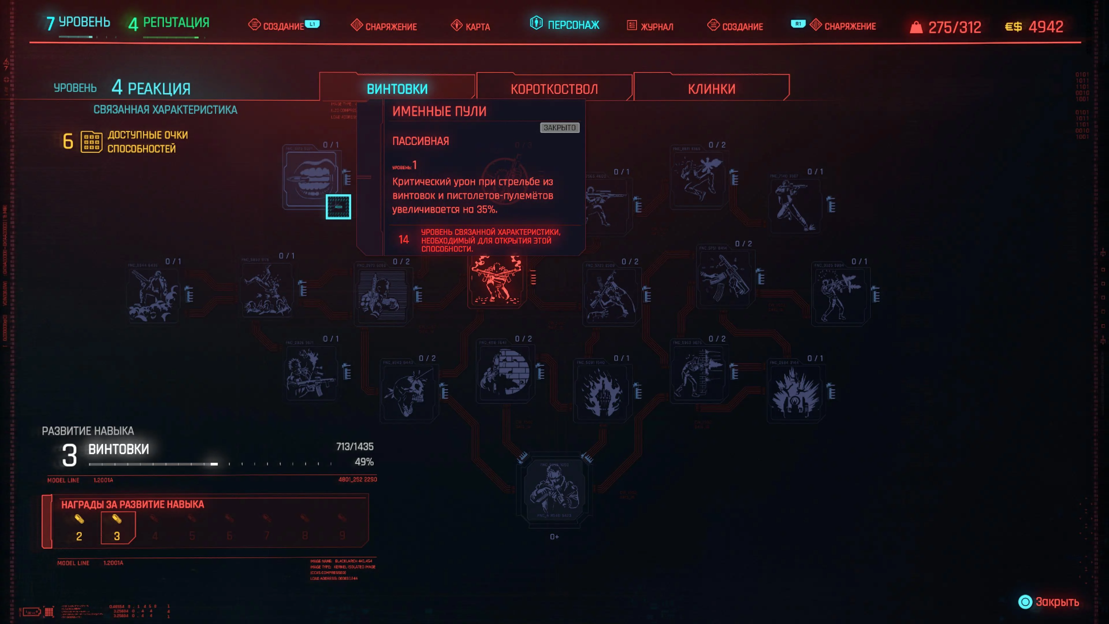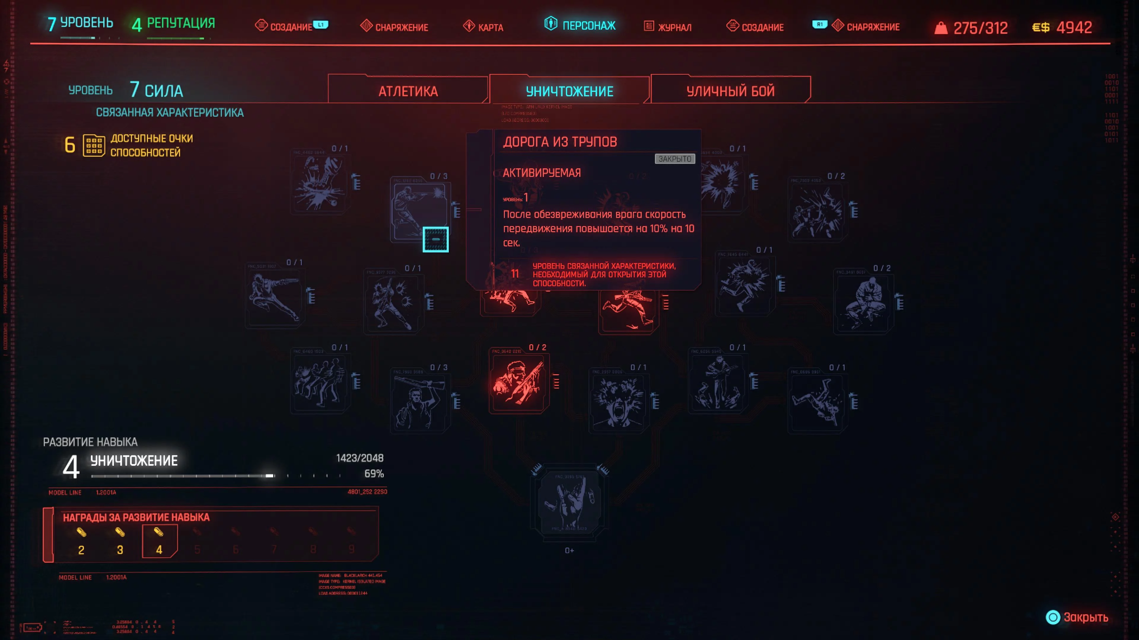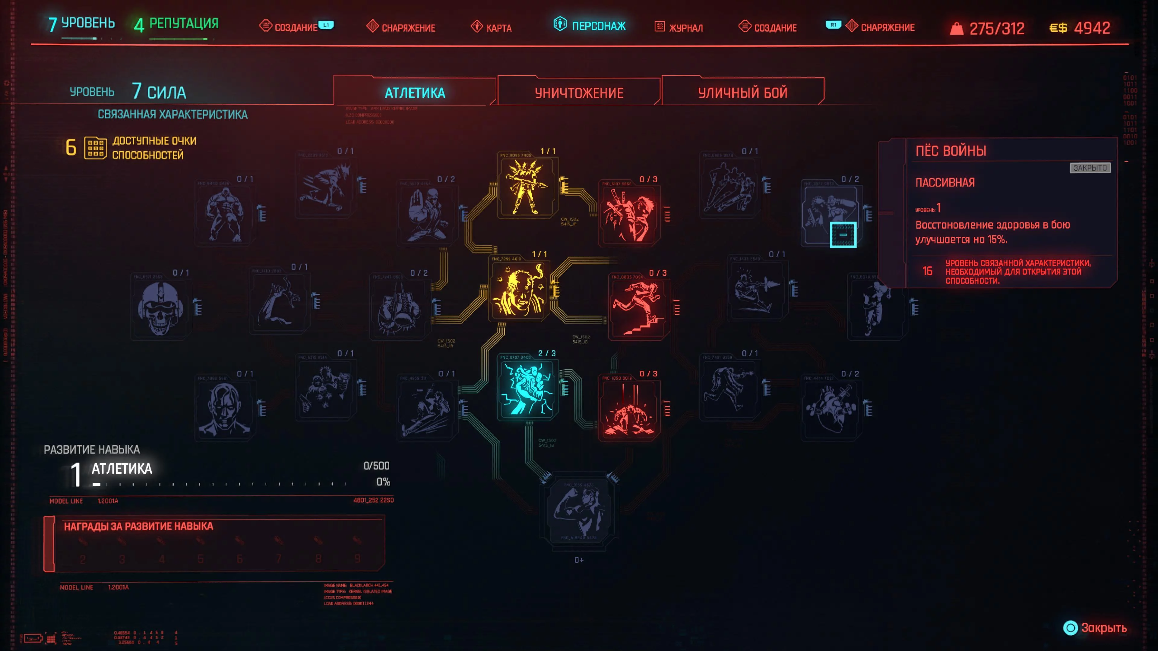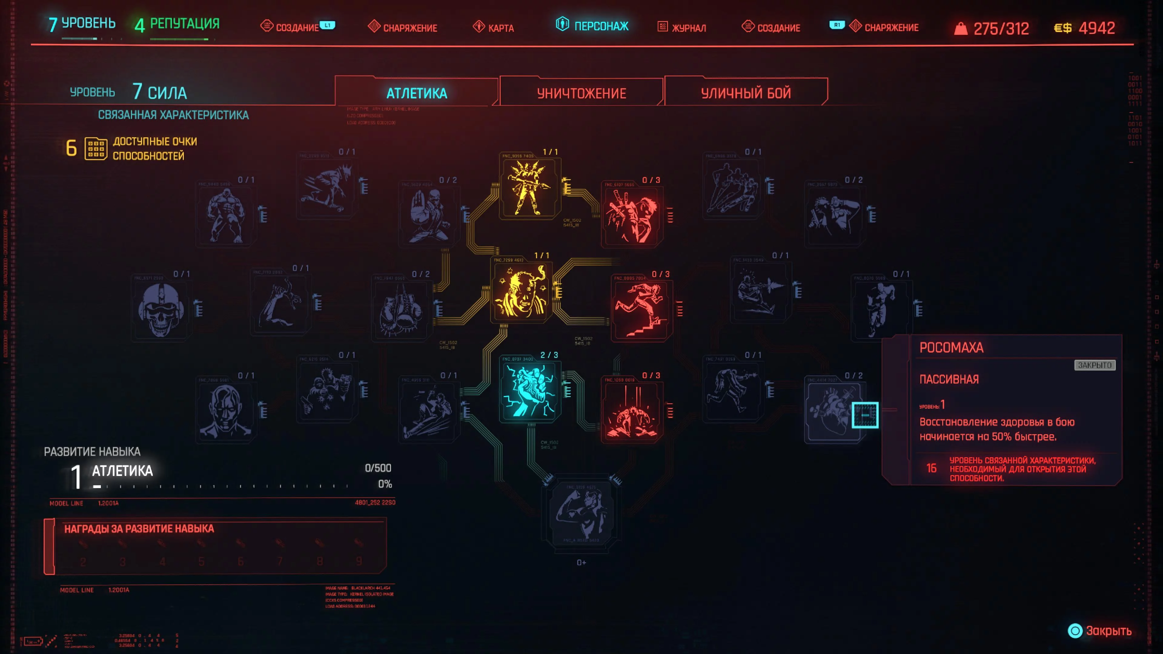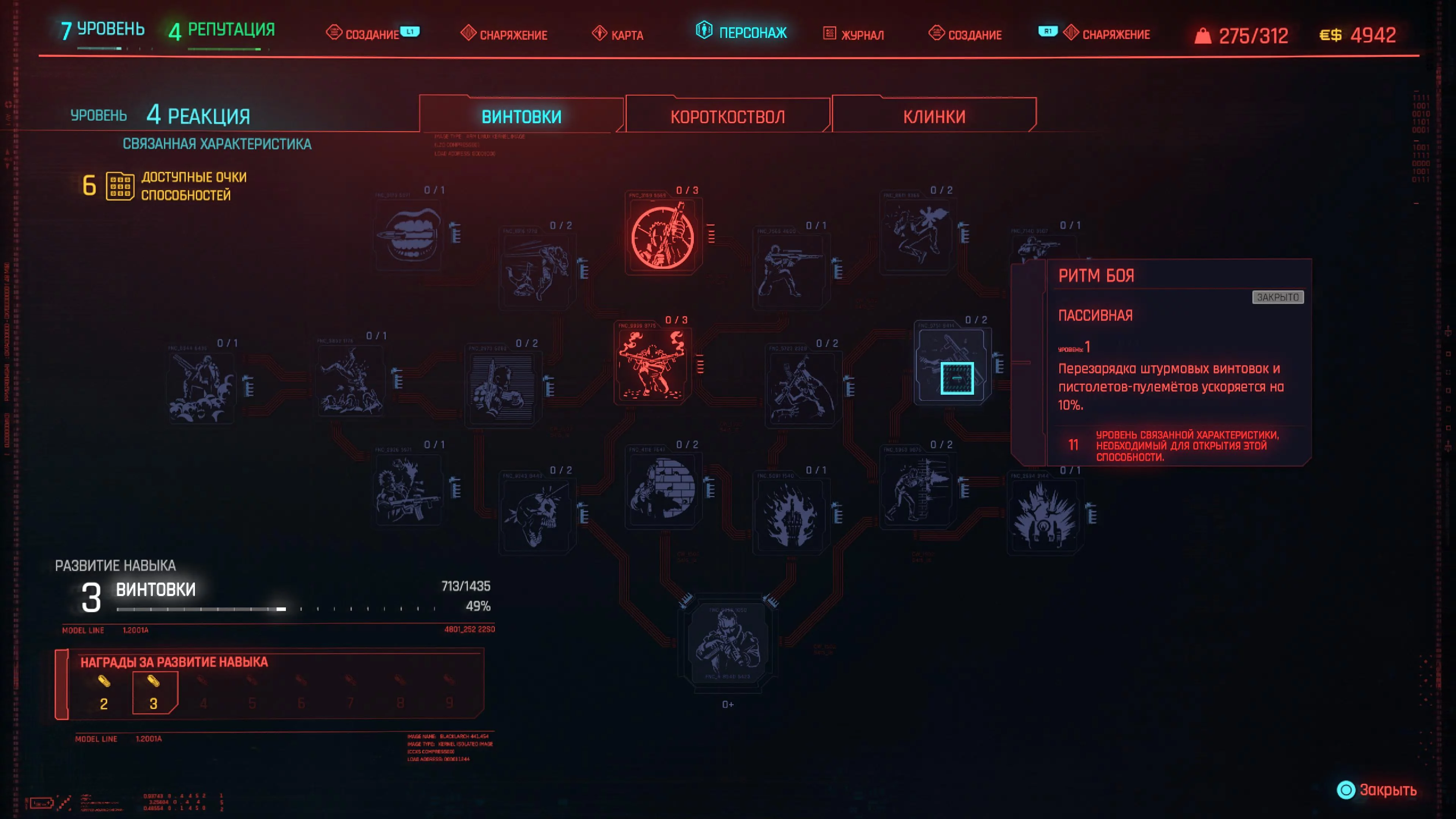 Реакцию и силу прокачиваем равномерно. Это потому, что от них нам нужны пассивные эффекты, которые не только помогут выжить, но и улучшат урон. Хладнокровие оставляем напоследок, потому что здесь нужны серьезные вложения очков, чтобы заметить большую разницу.