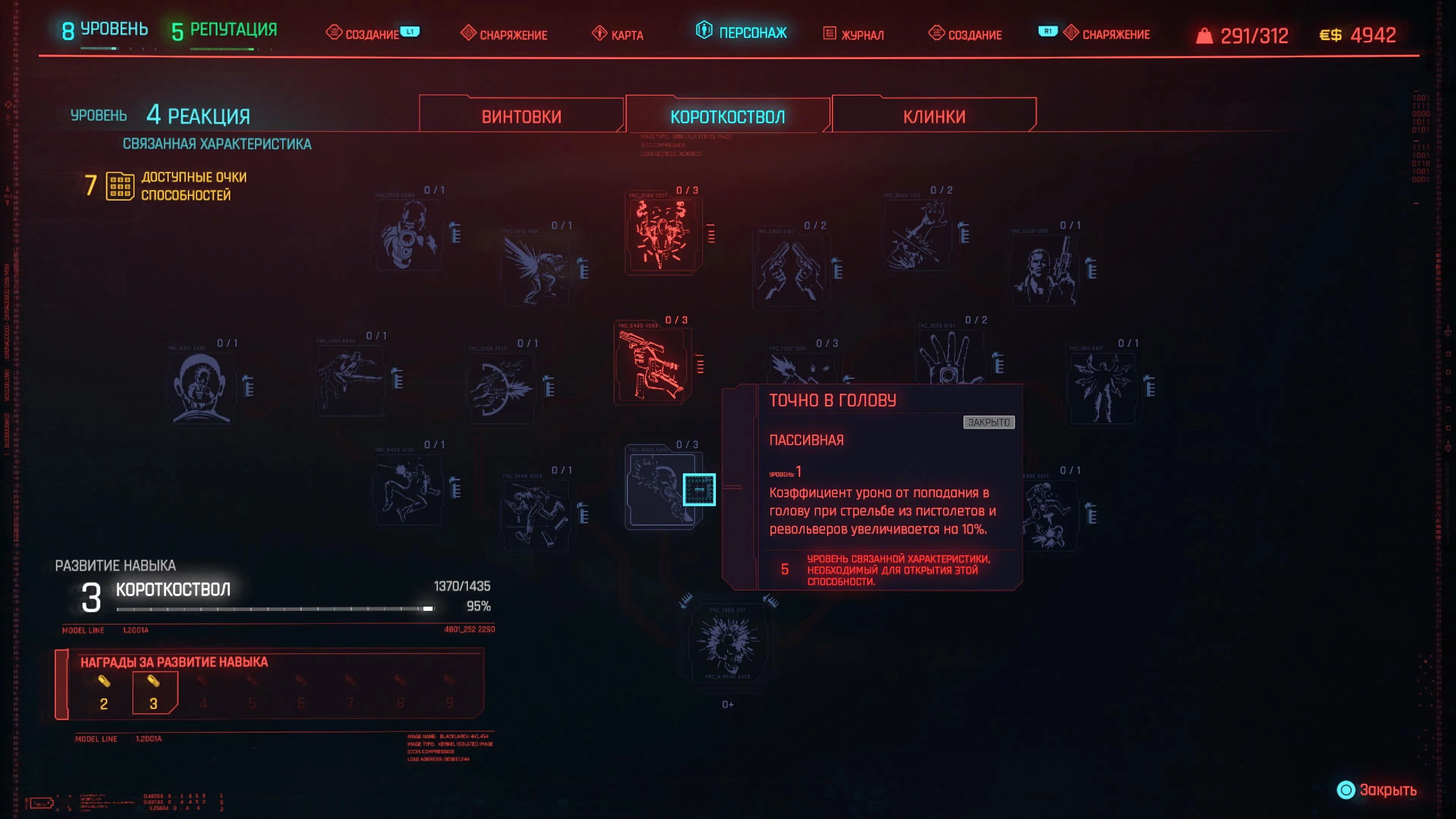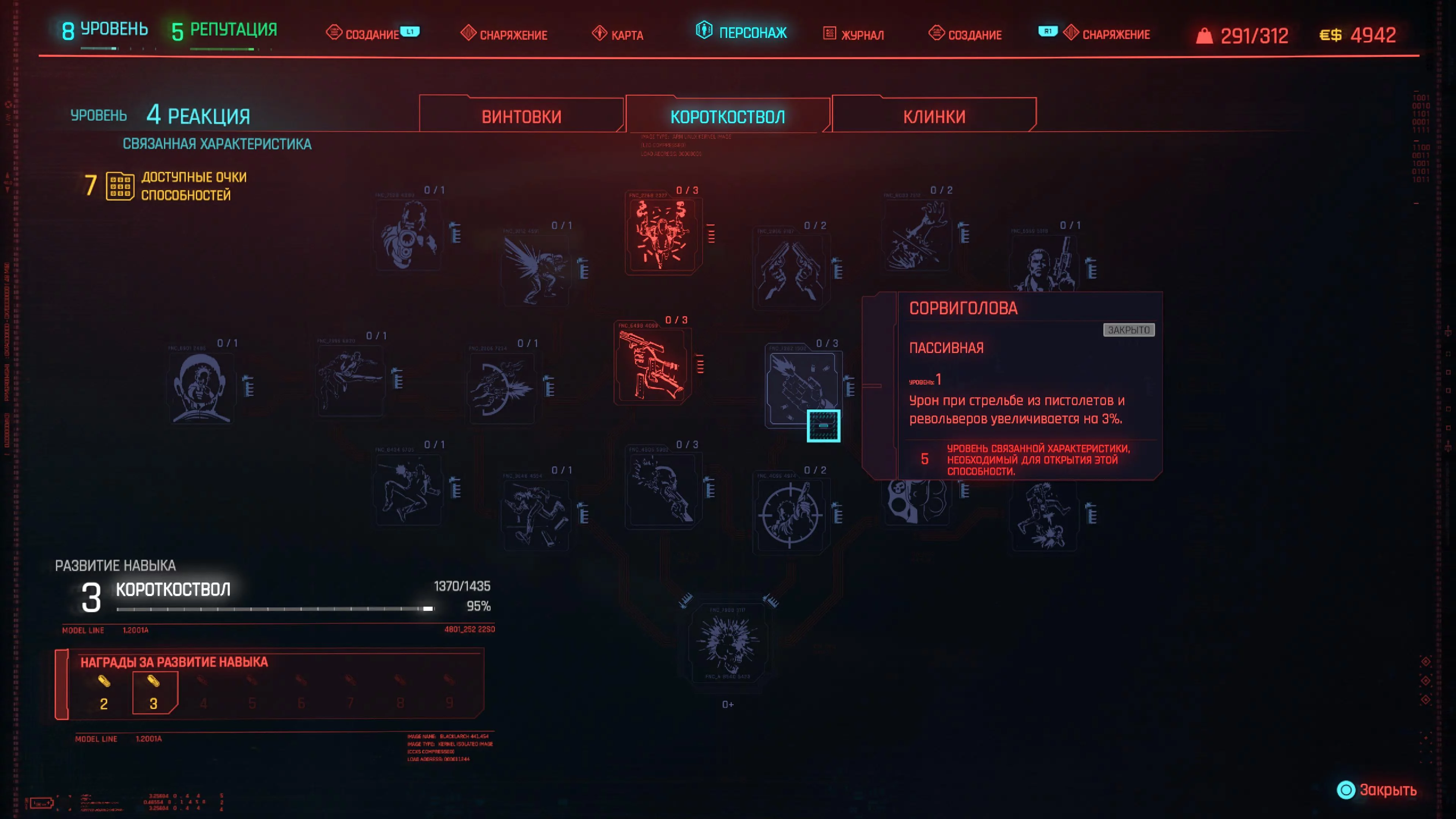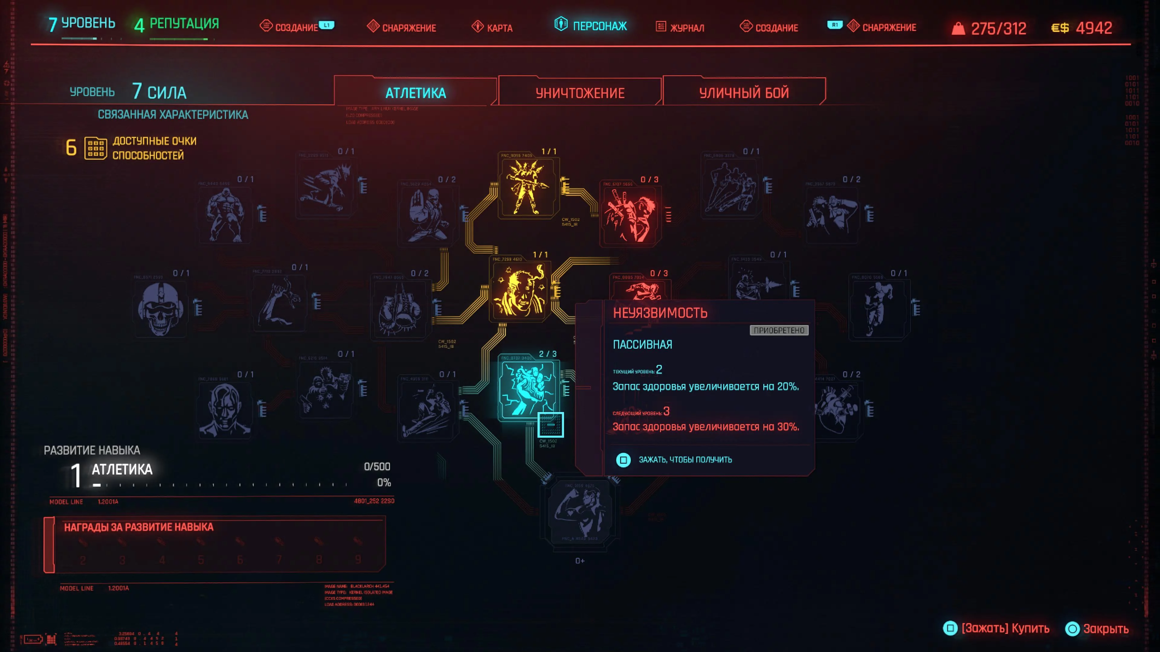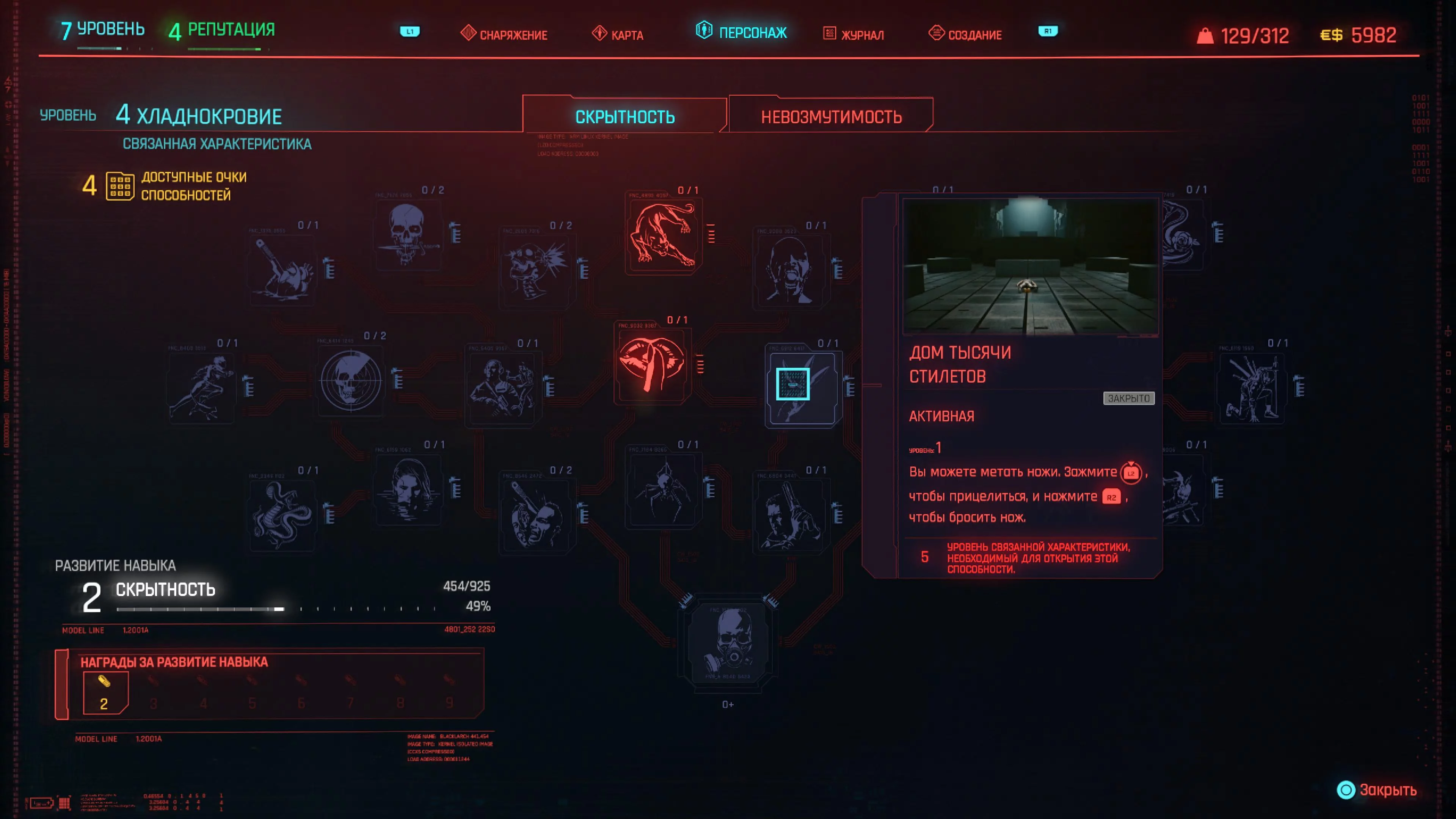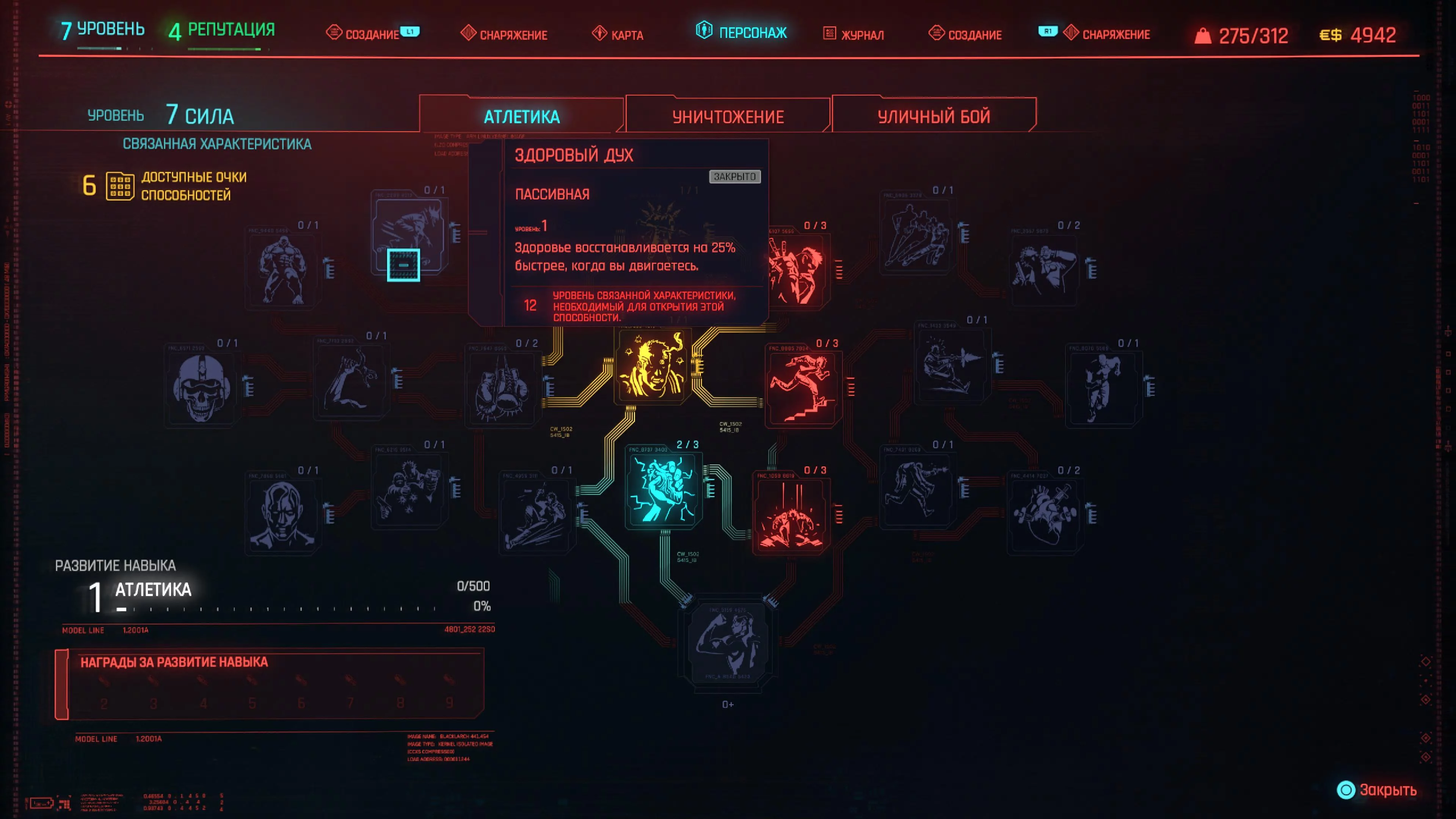Реакцию и силу прокачиваем равномерно. Это потому, что от них нам нужны пассивные эффекты, которые не только помогут выжить, но и улучшат урон. Хладнокровие оставляем напоследок, потому что здесь нужны серьезные вложения очков, чтобы заметить большую разницу.