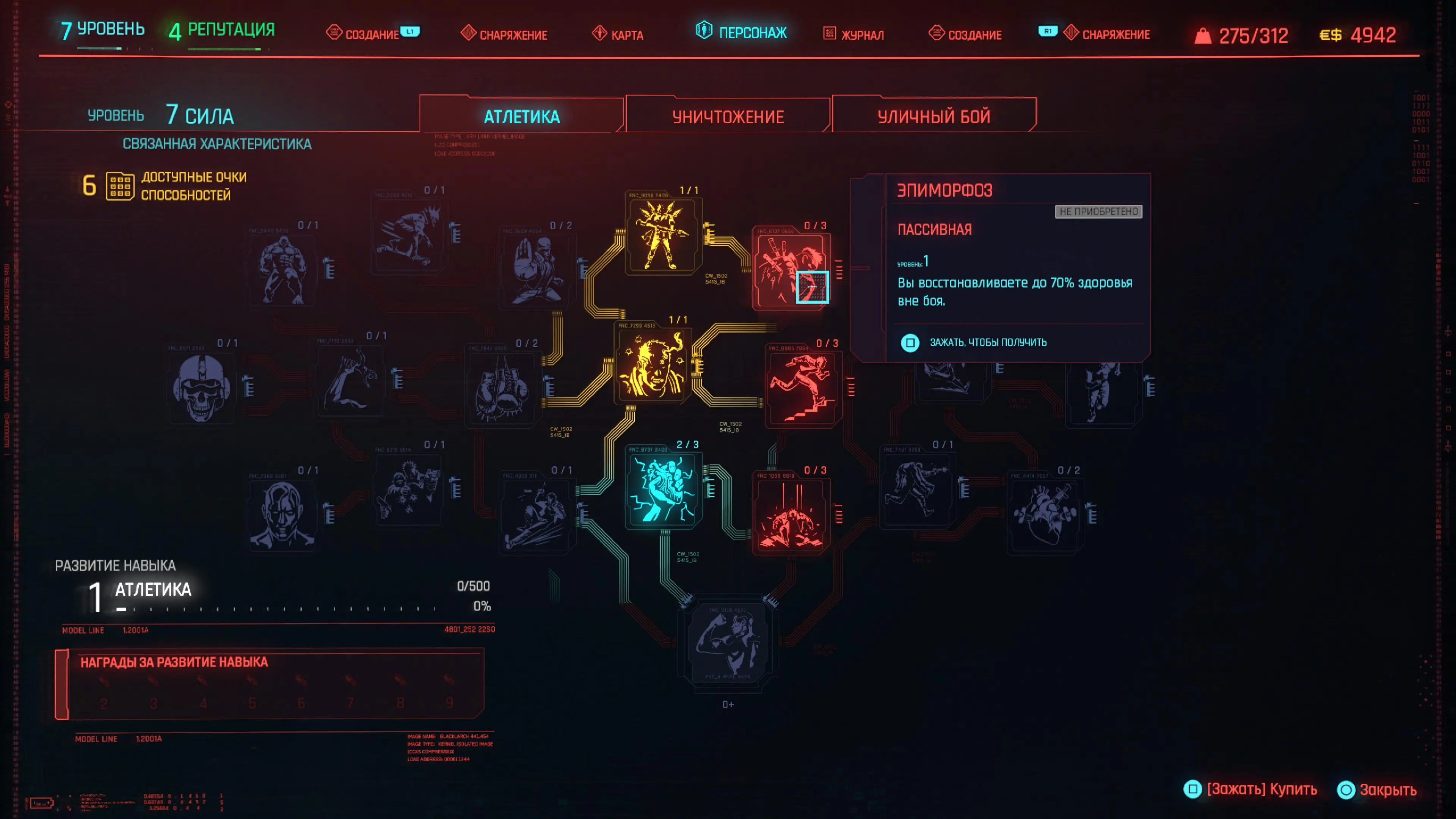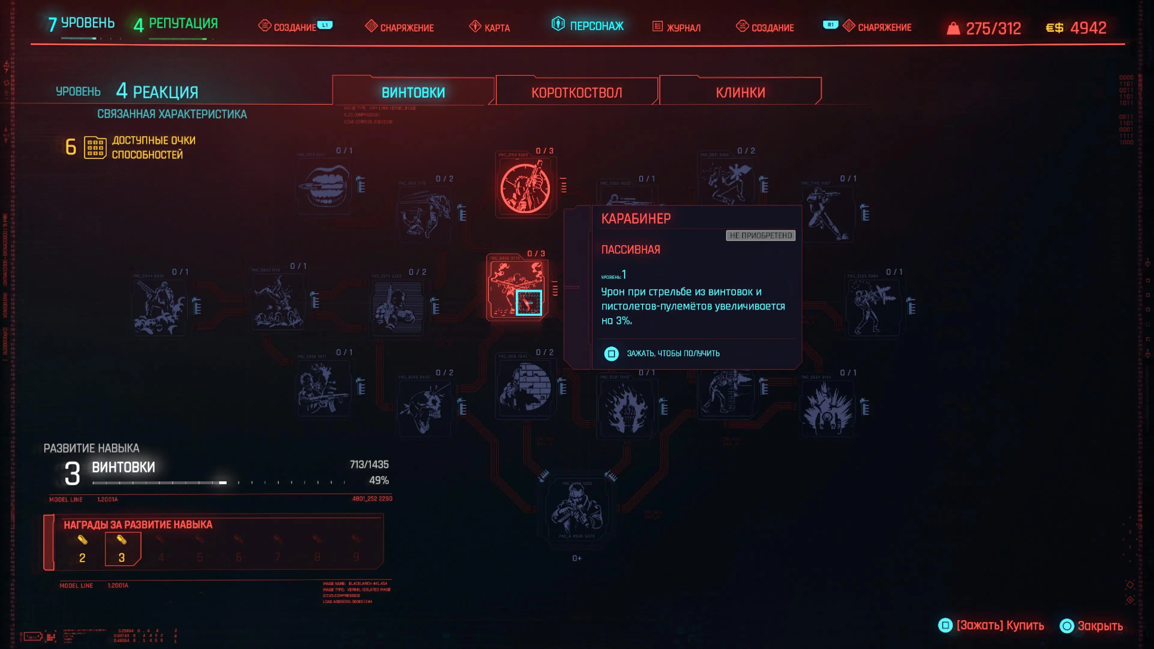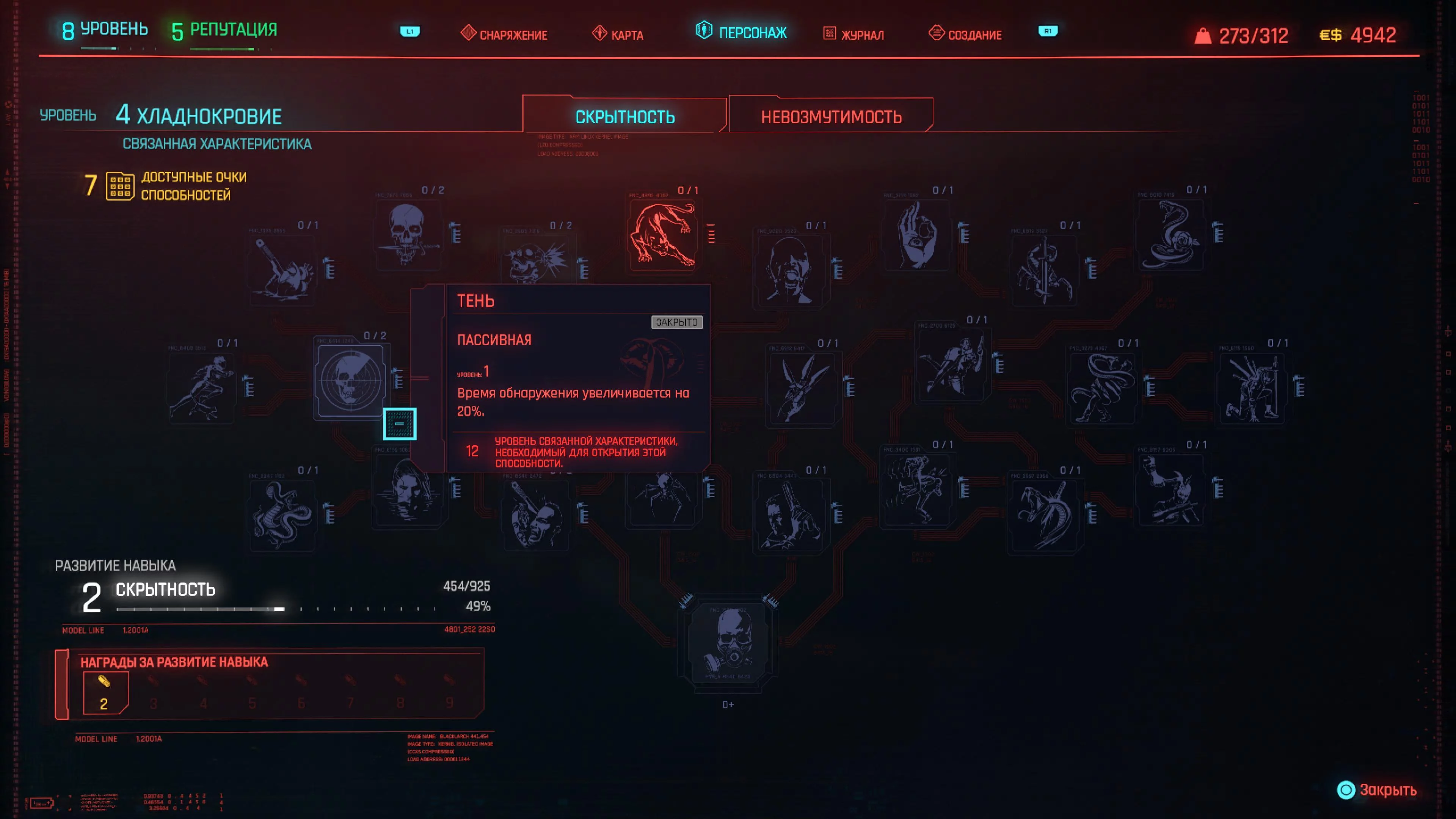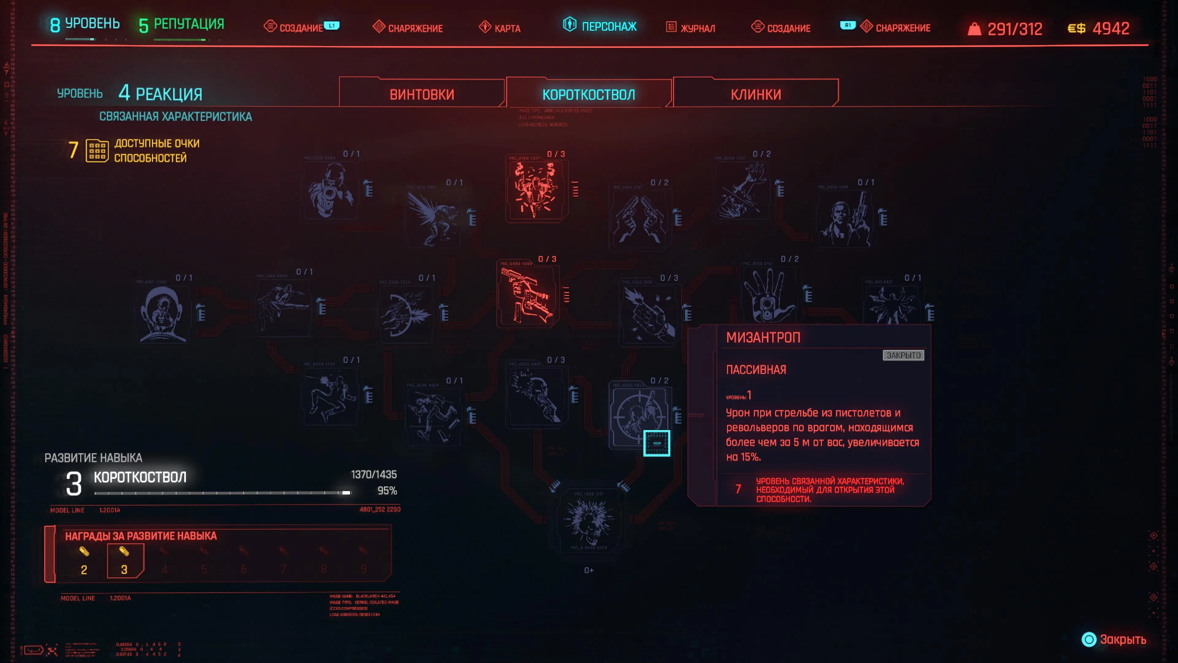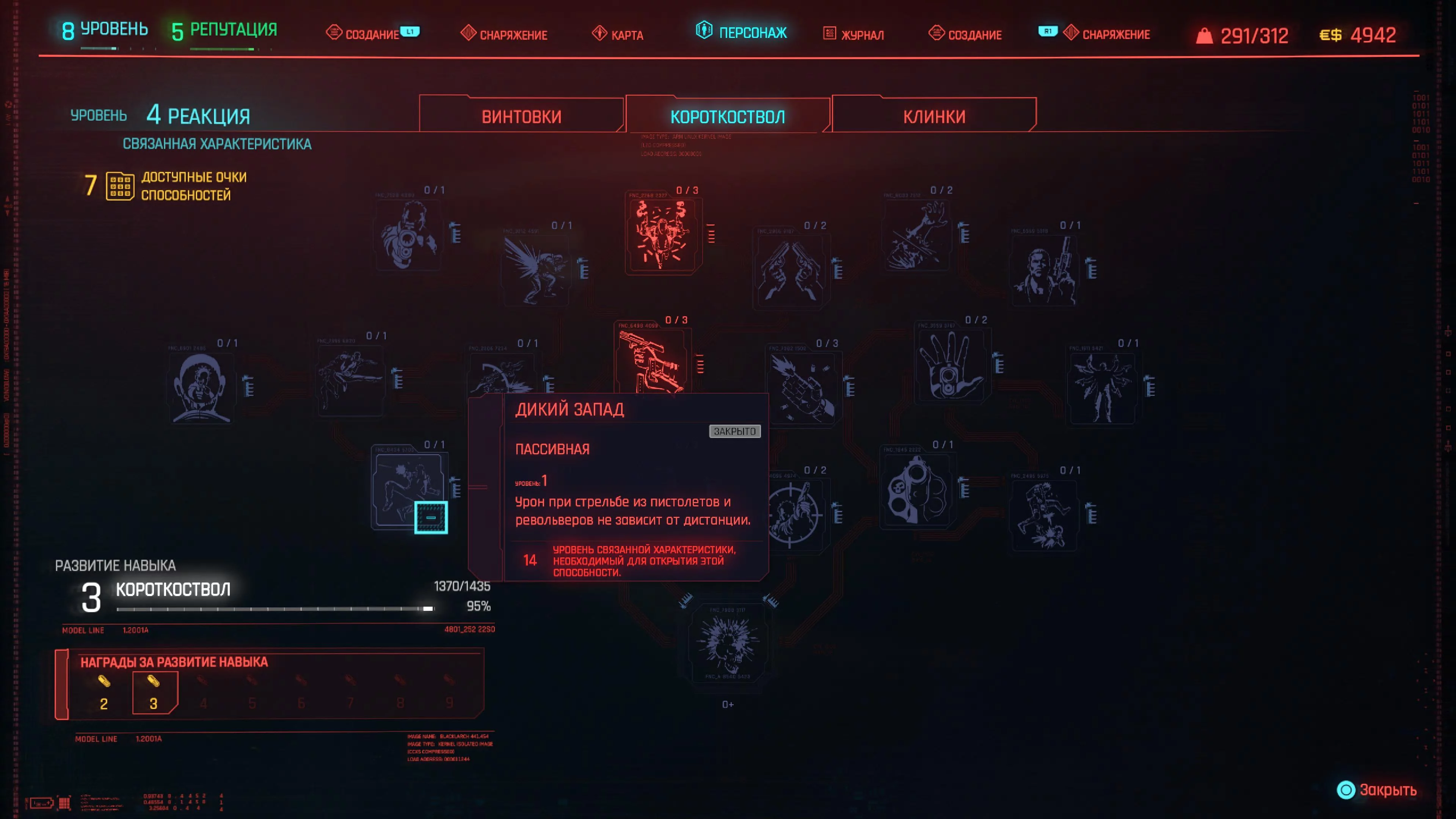 Реакцию и силу прокачиваем равномерно. Это потому, что от них нам нужны пассивные эффекты, которые не только помогут выжить, но и улучшат урон. Хладнокровие оставляем напоследок, потому что здесь нужны серьезные вложения очков, чтобы заметить большую разницу.