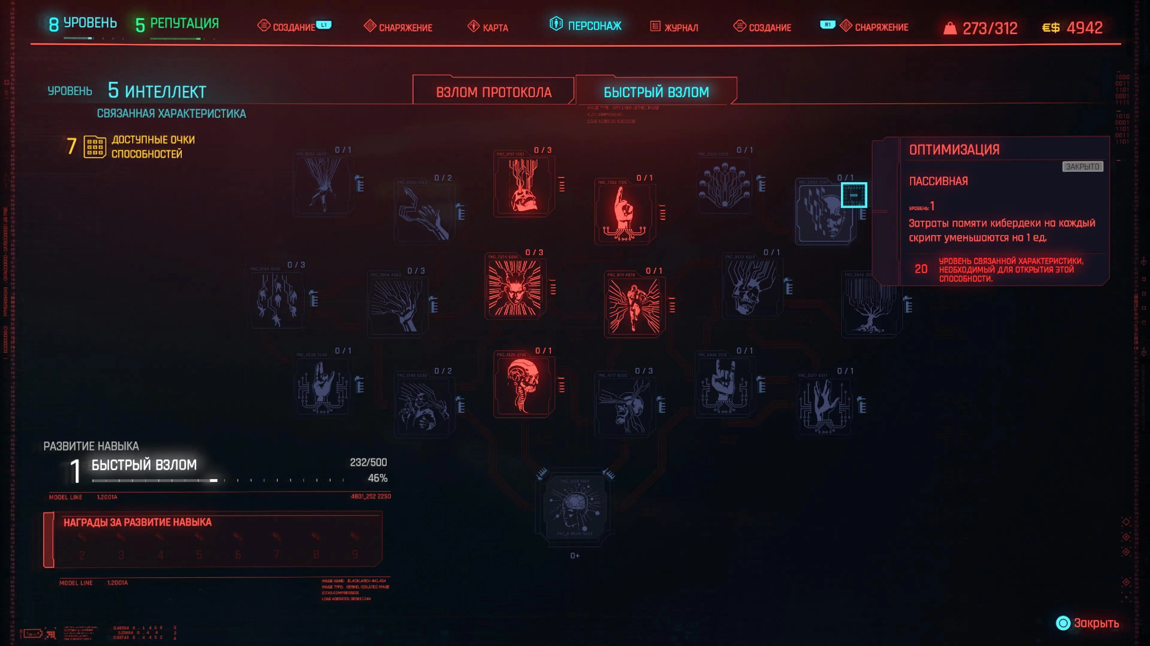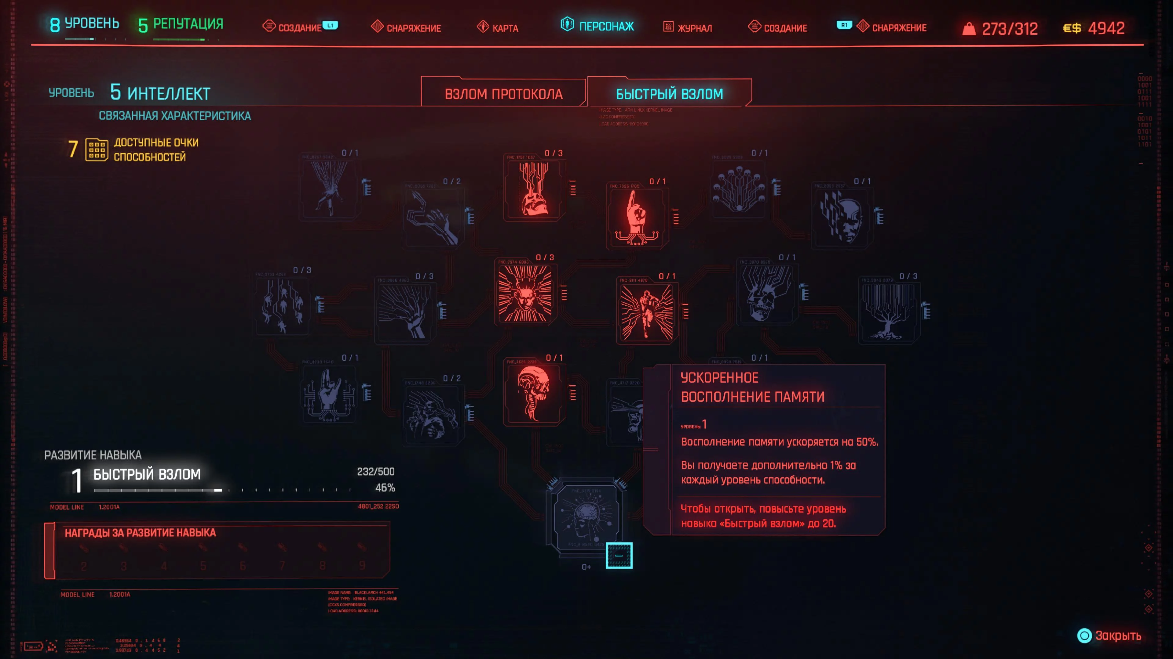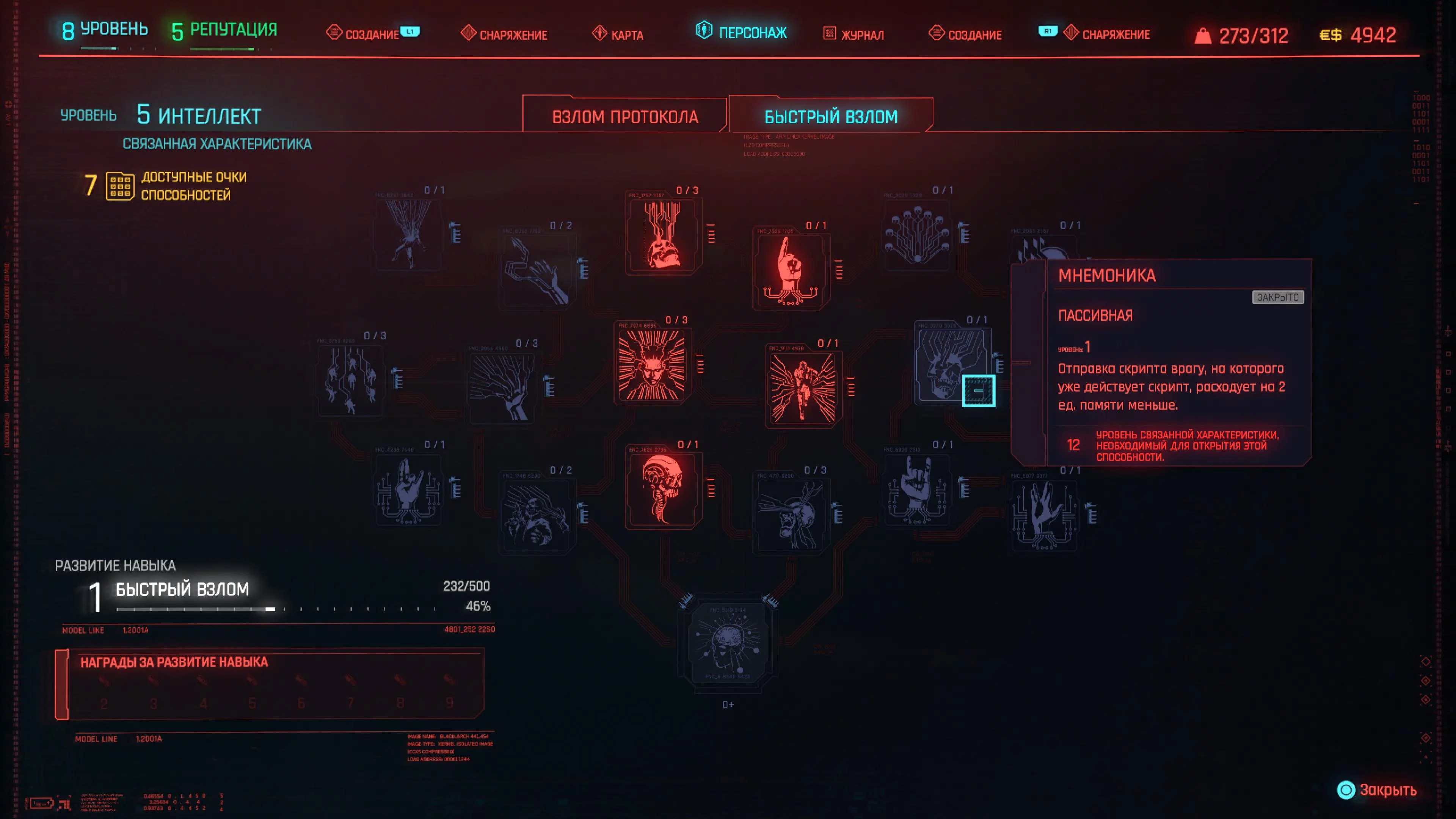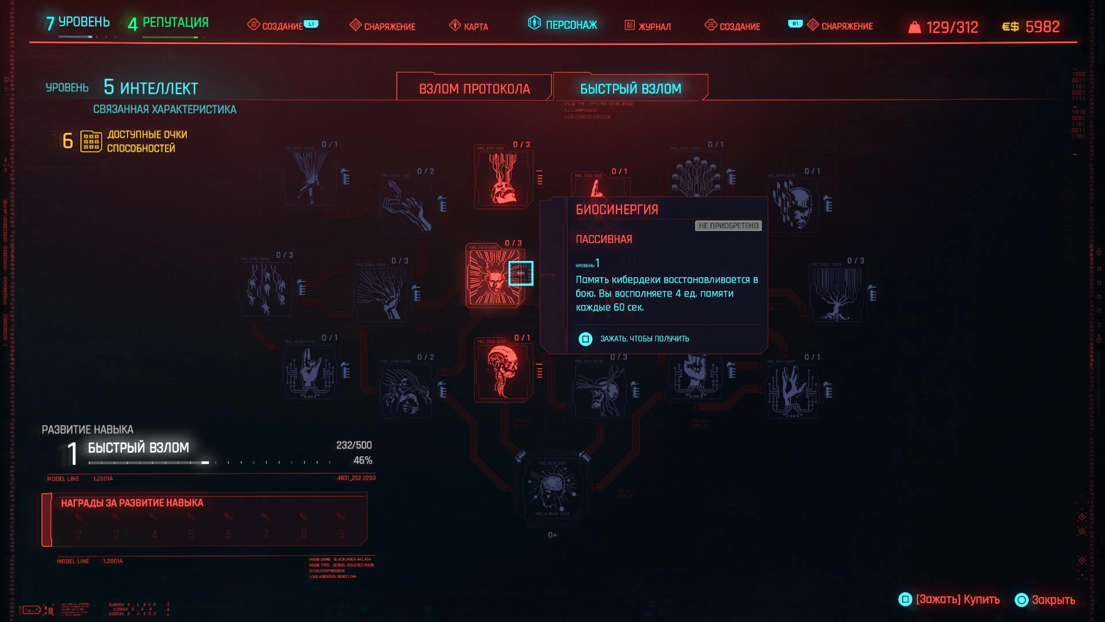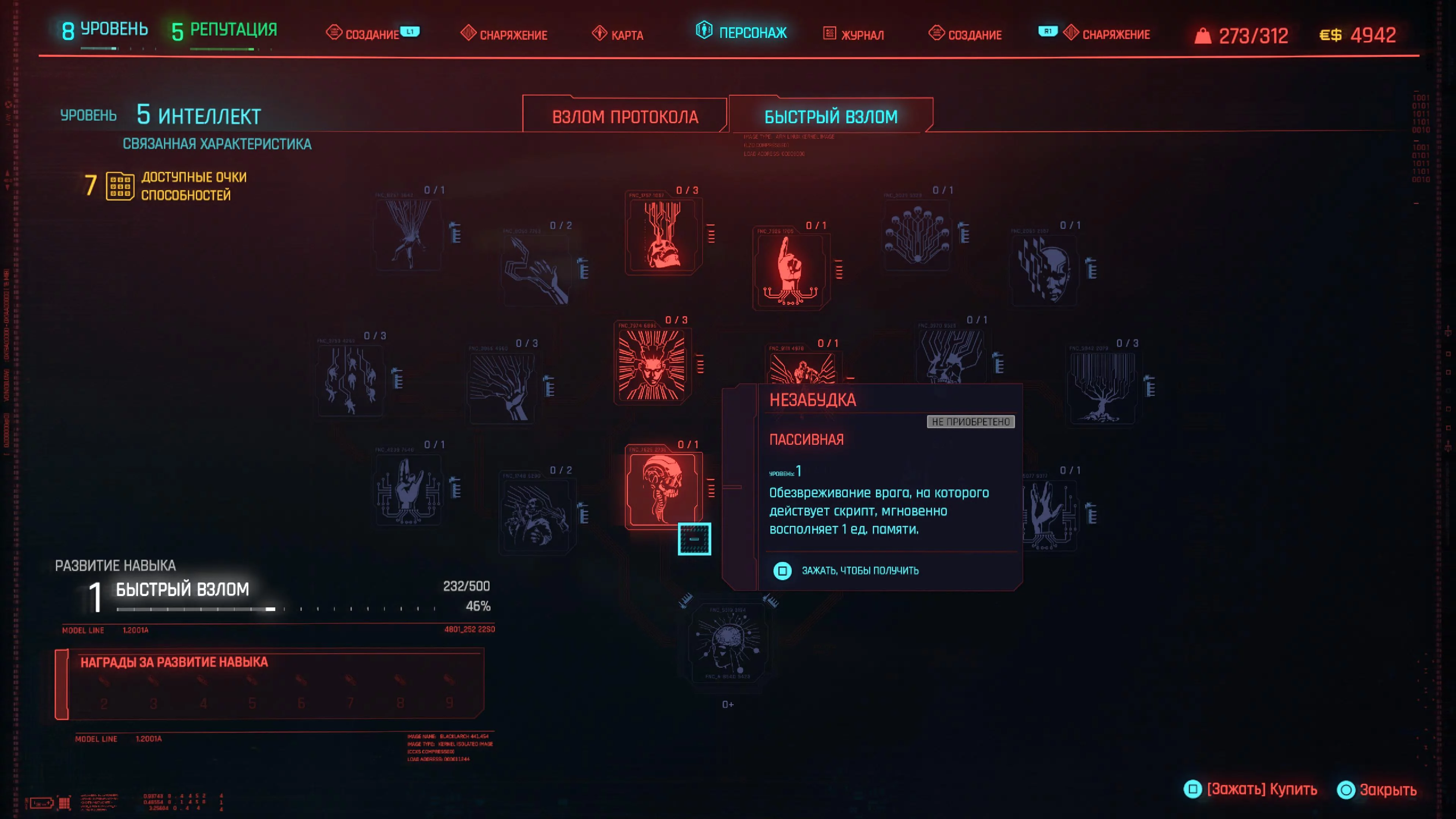 Дальше берем «Разъедающие программы» (Bloodware), «Незабудка» (Forget-Me-Not), «Поддержка связи» (Signal Support), «Резкое пробуждение» (Subliminal Message), «Мнемоника» (Mnemonic), «Критическая ошибка» (Critical Error), «Анамнез» (Anamnesis), «Оптимизация» (Optimization) и «Ускоренное восполнение памяти» (Master Ram Liberator).