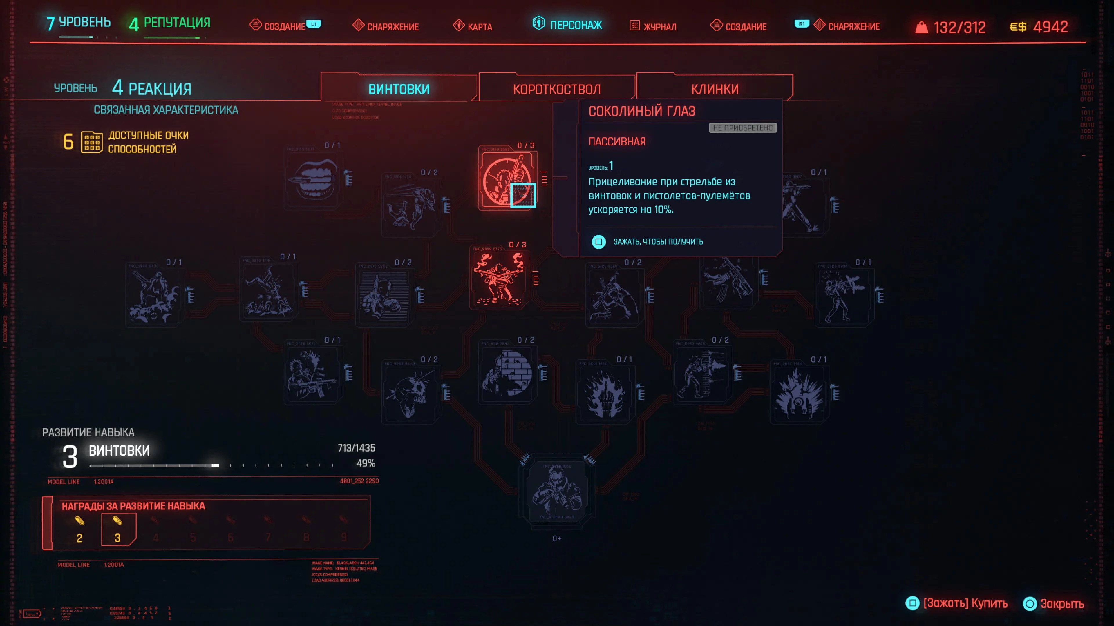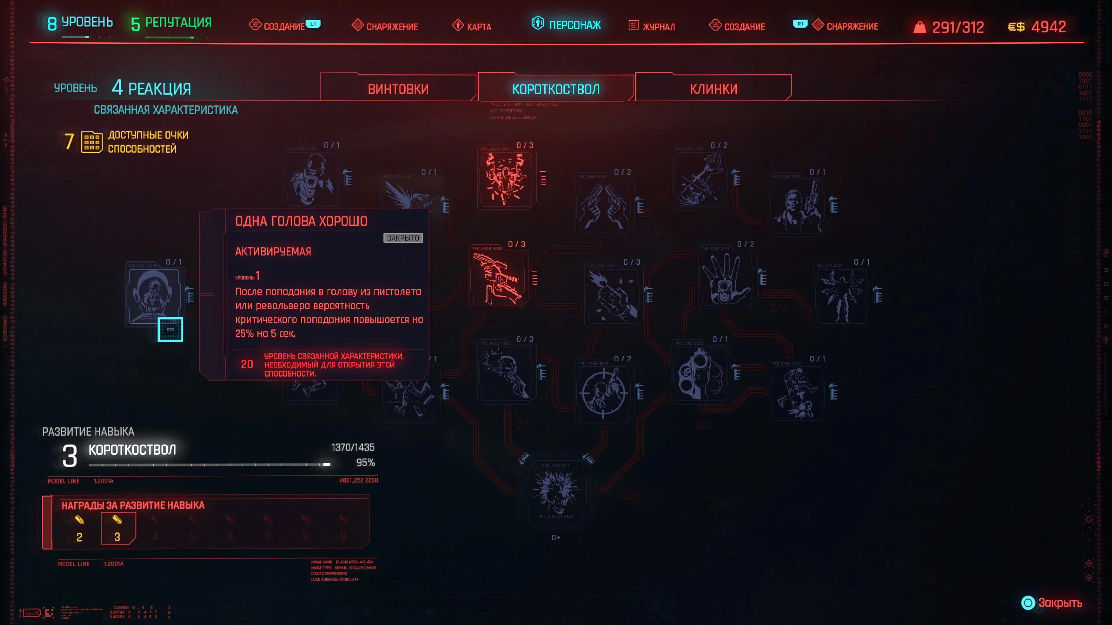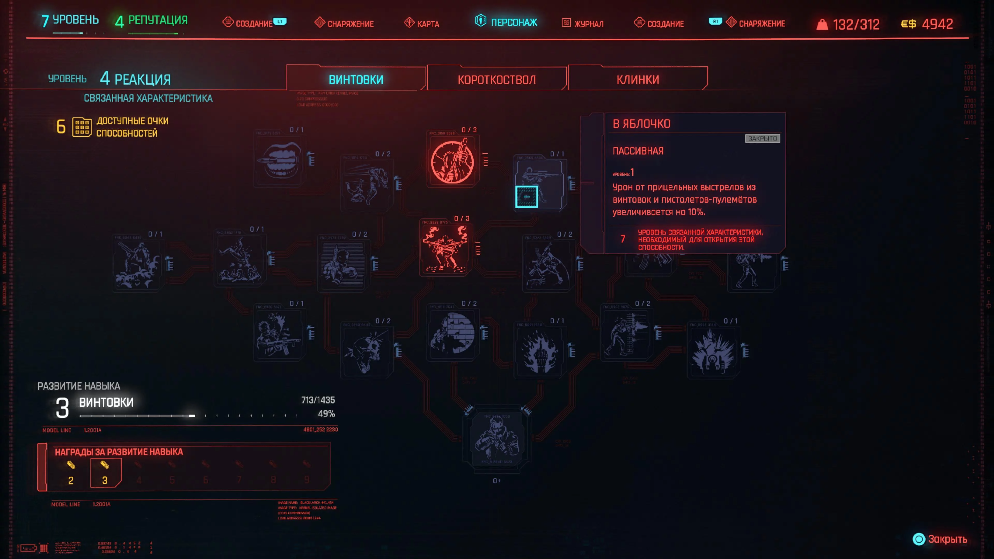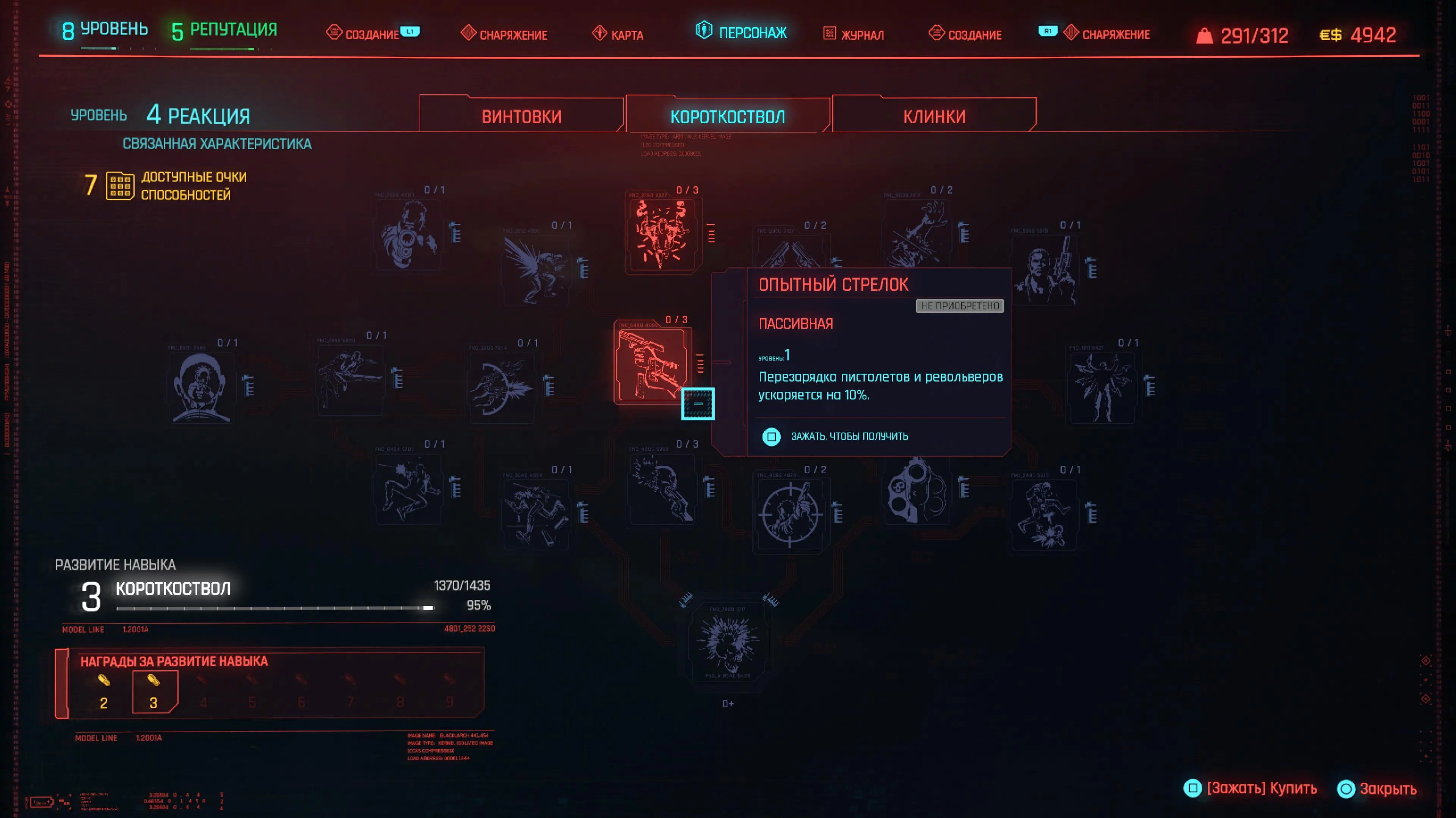 Реакция — наша вторая главная характеристика, так как здесь есть способности для пистолета. Высокоуровневые способности приносят больше пользы, чем низкоуровневые. Поэтому сперва прокачивайте только что открывшиеся высокоуровневые, а затем докачивайте способности более низкого уровня.