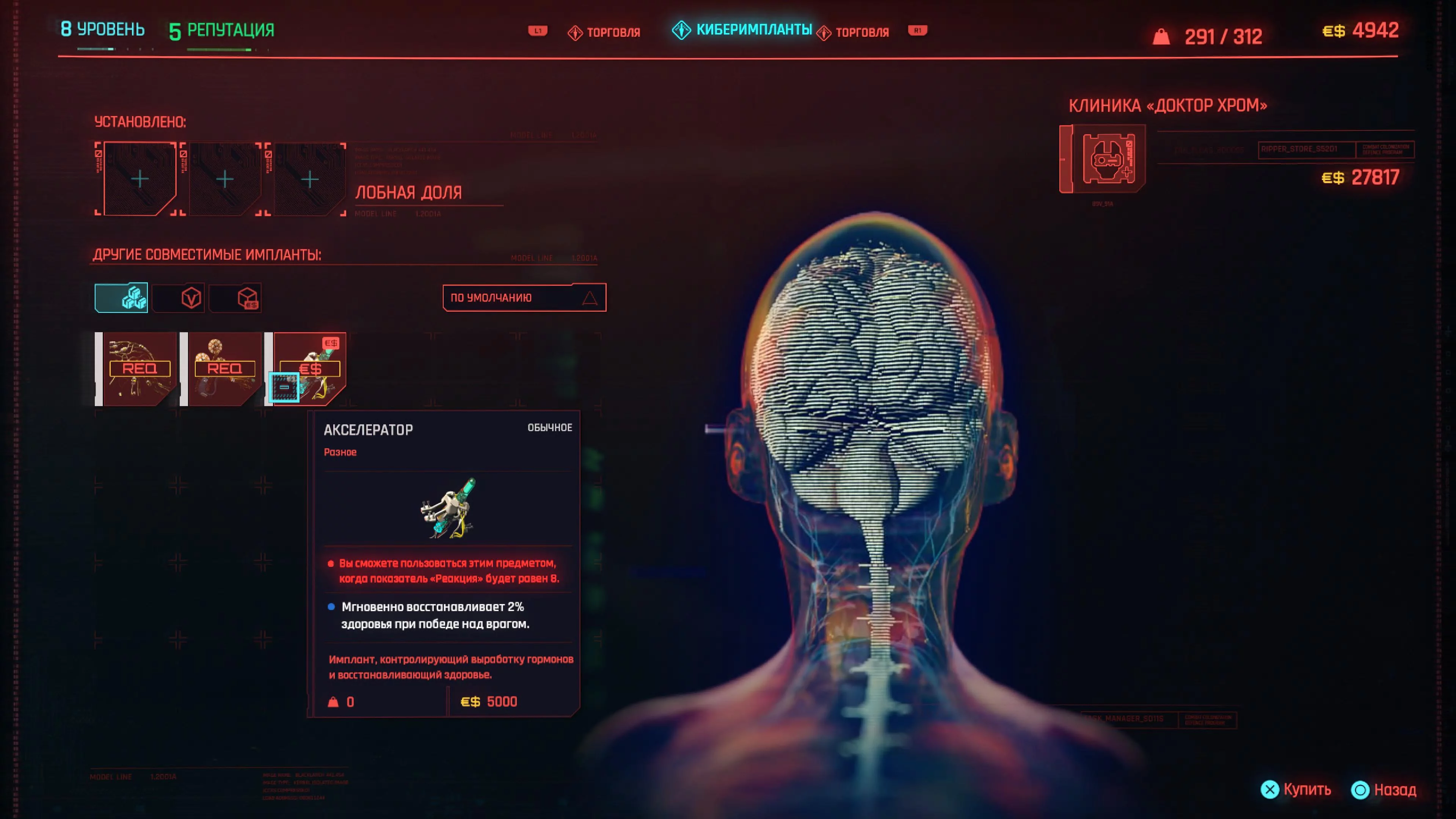 Для этой сборки есть отличный имплант — «Стимулятор лимбической системы» (Limbic System Enhancement), который увеличивает ваш шанс критического попадания.