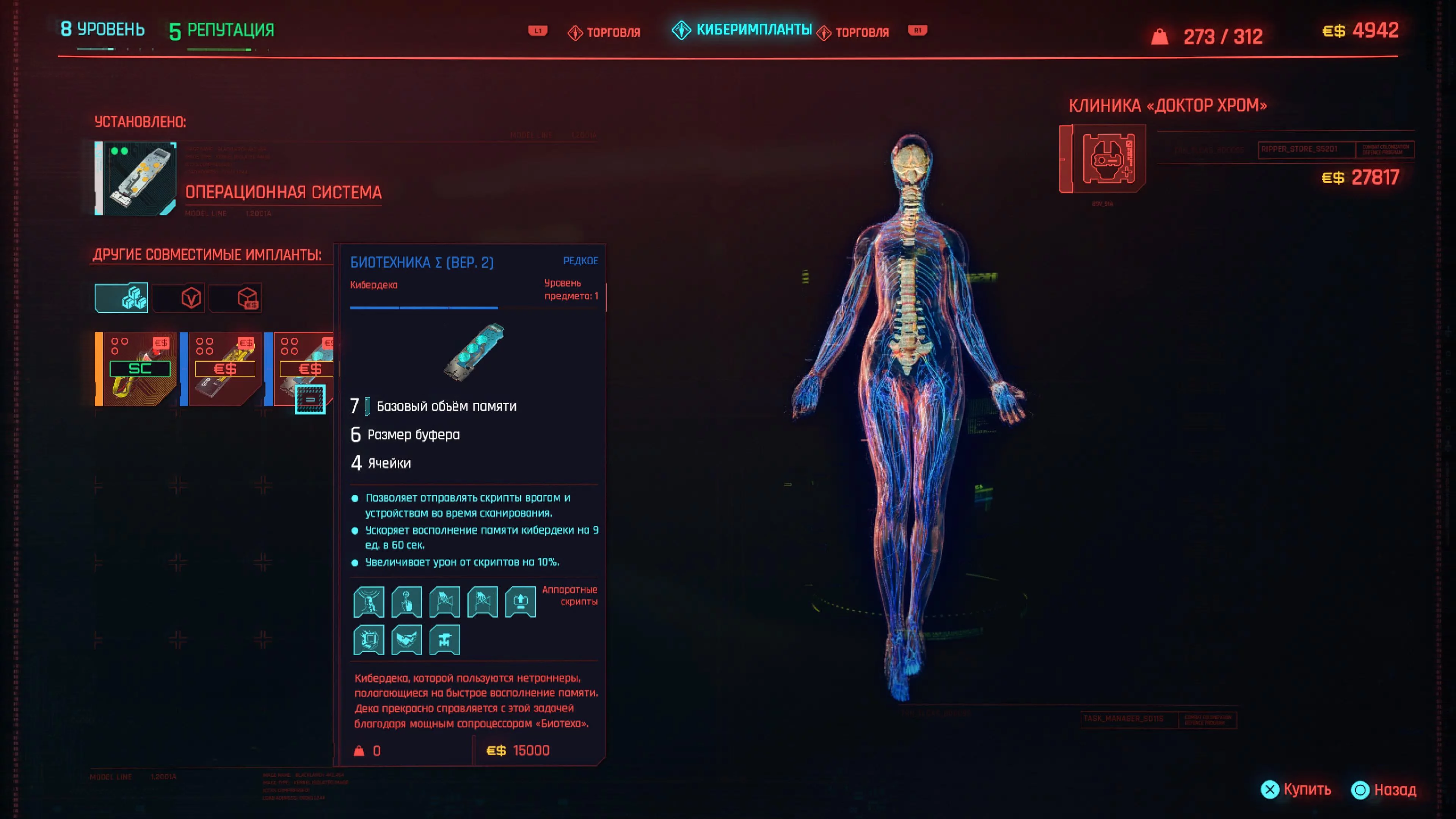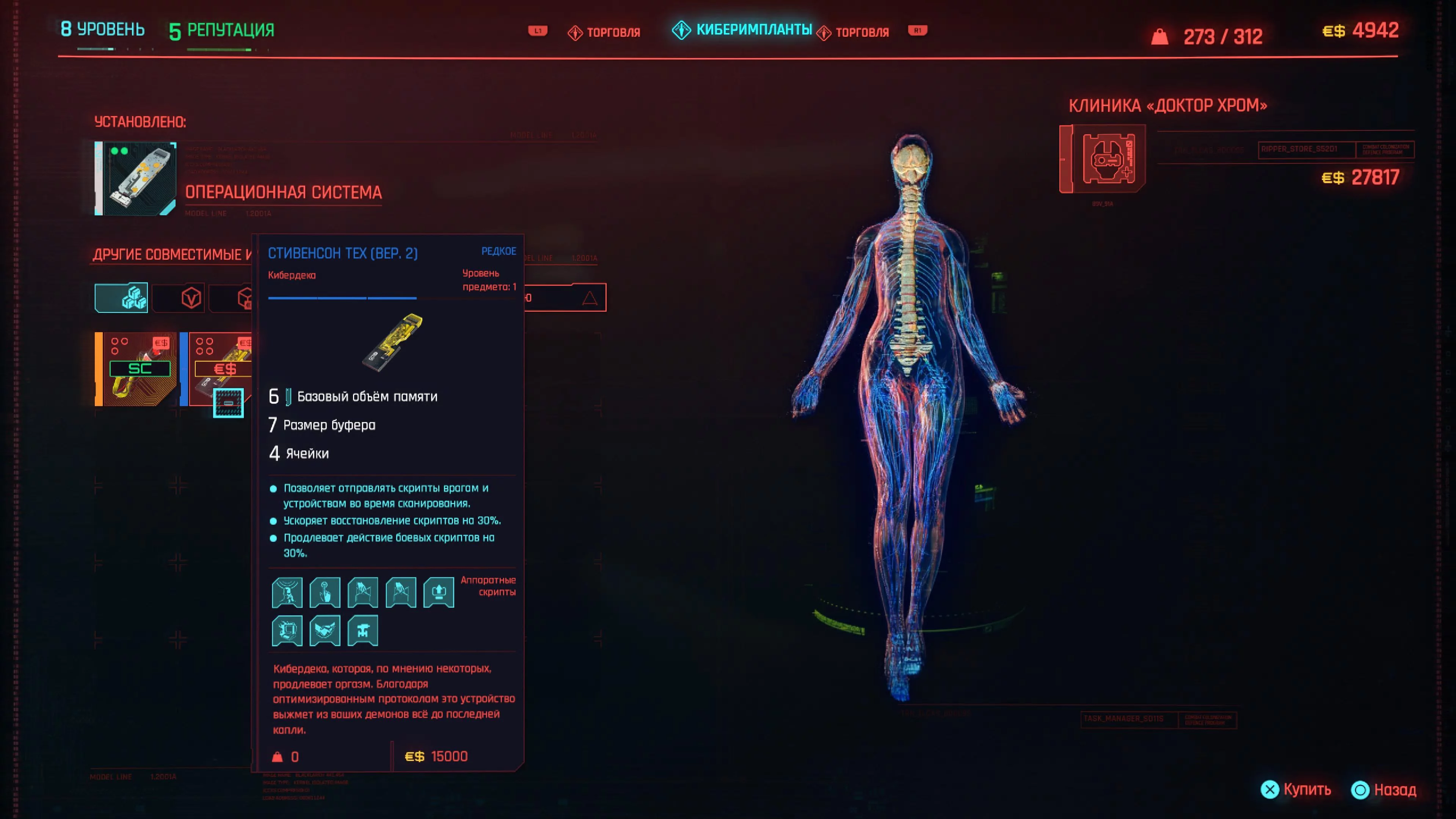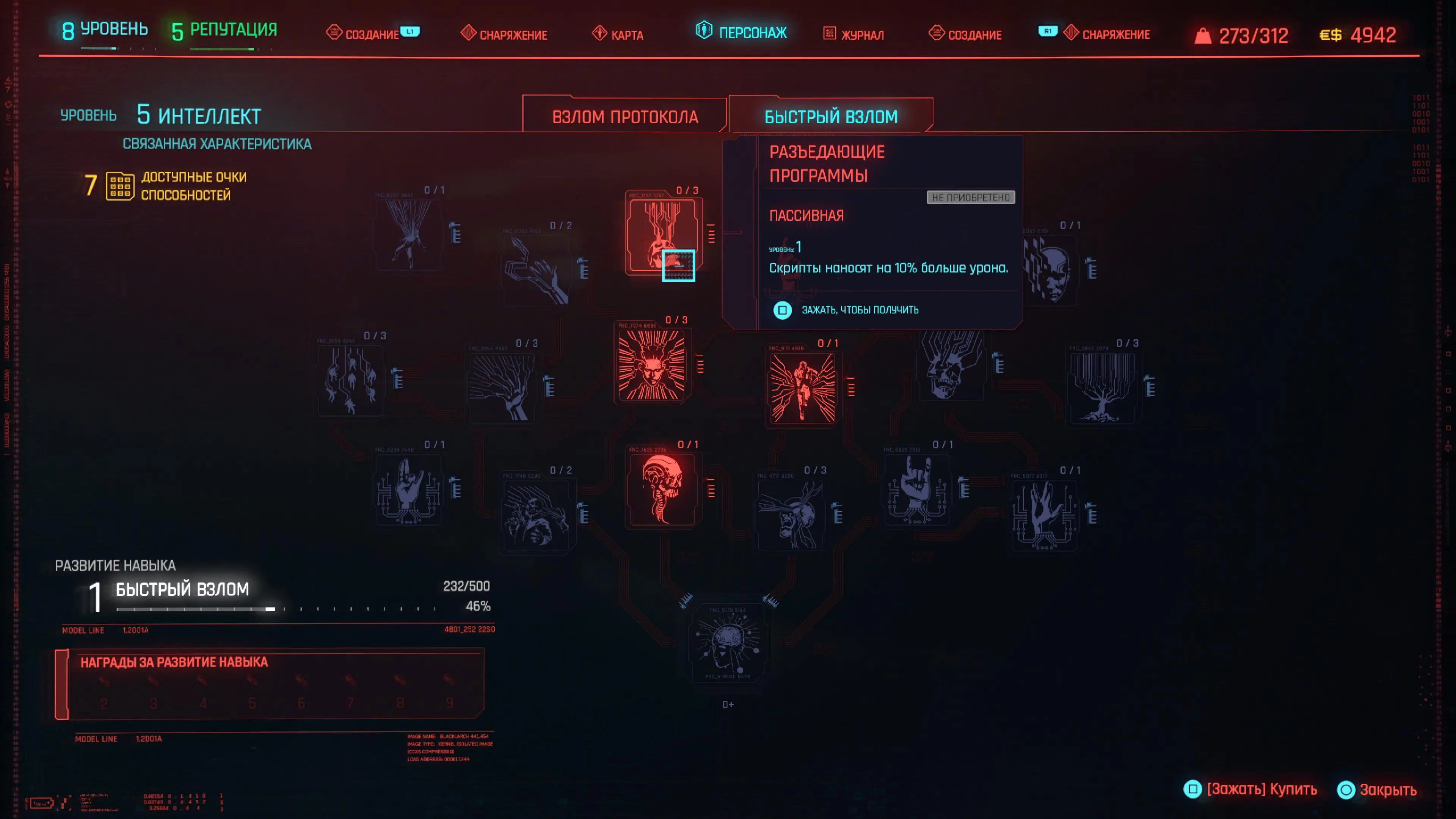 Скрипты — это способности, которые можно загрузить в вашу кибердеку. Все кибердеки разные, некоторые позволяют вставлять в них больше скриптов, некоторые дают специальные бонусы или имеют большей объем памяти.