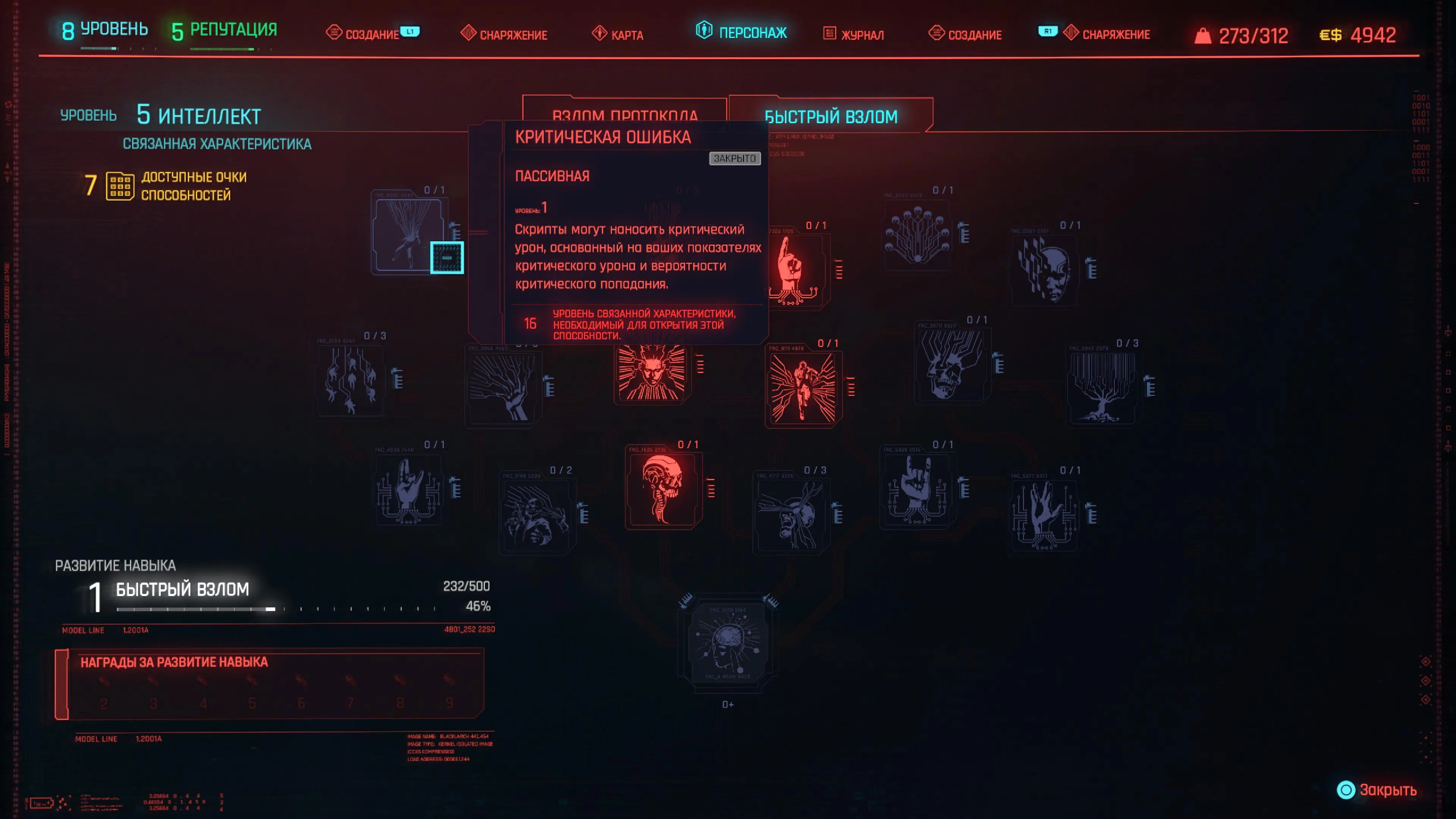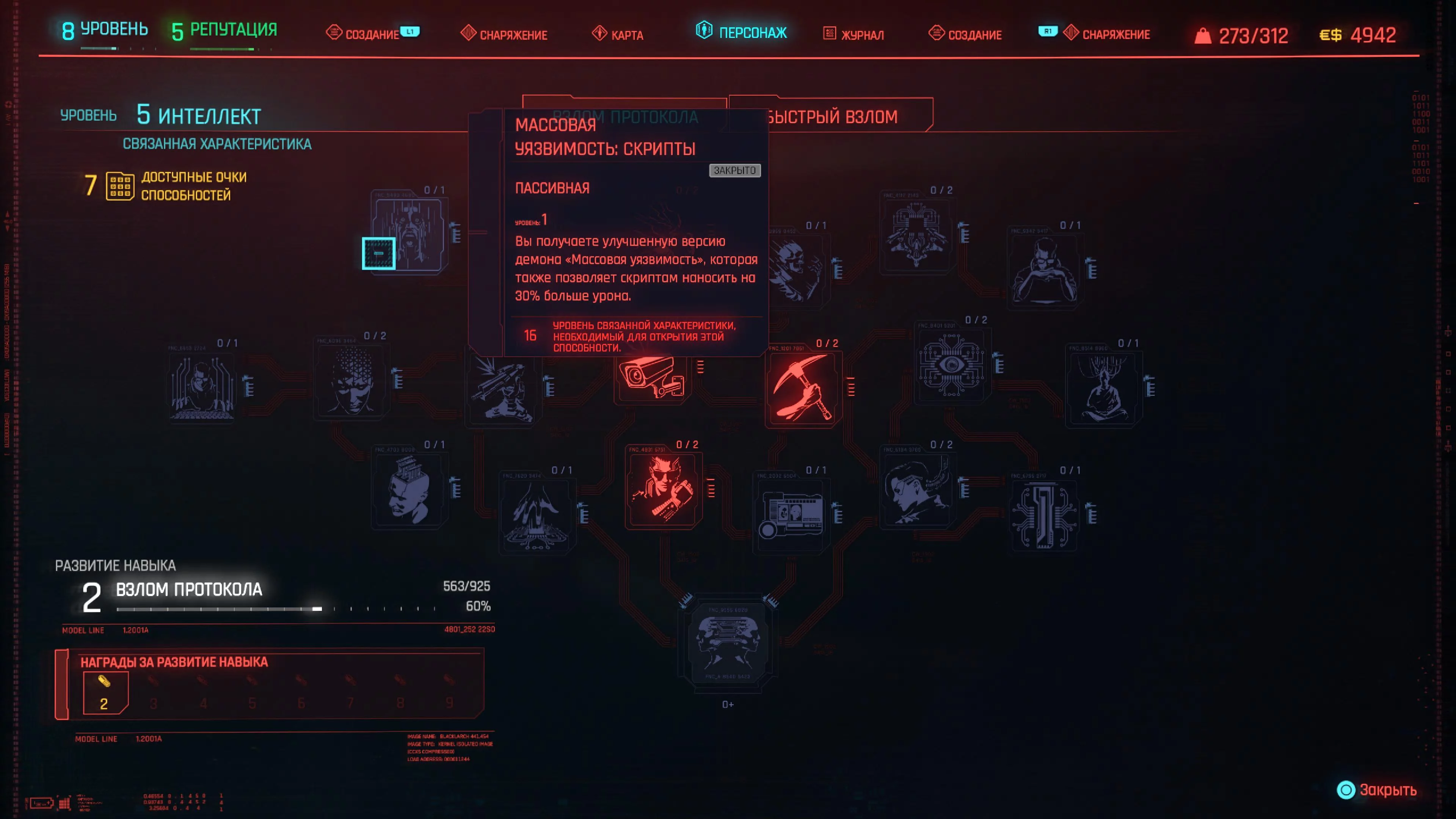 Для этого билда необходимы следующие характеристики: хладнокровие, реакция и интеллект. Хладнокровие дает вам повышенный урон от скрытности, а также открывает важные способности. Реакция дает вам дополнительный шанс критического удара и открывает способности для использования пистолета. Интеллект сделает ваши скрипты более эффективными и позволит использовать лучших демонов, которые вам понадобятся для этой сборки.