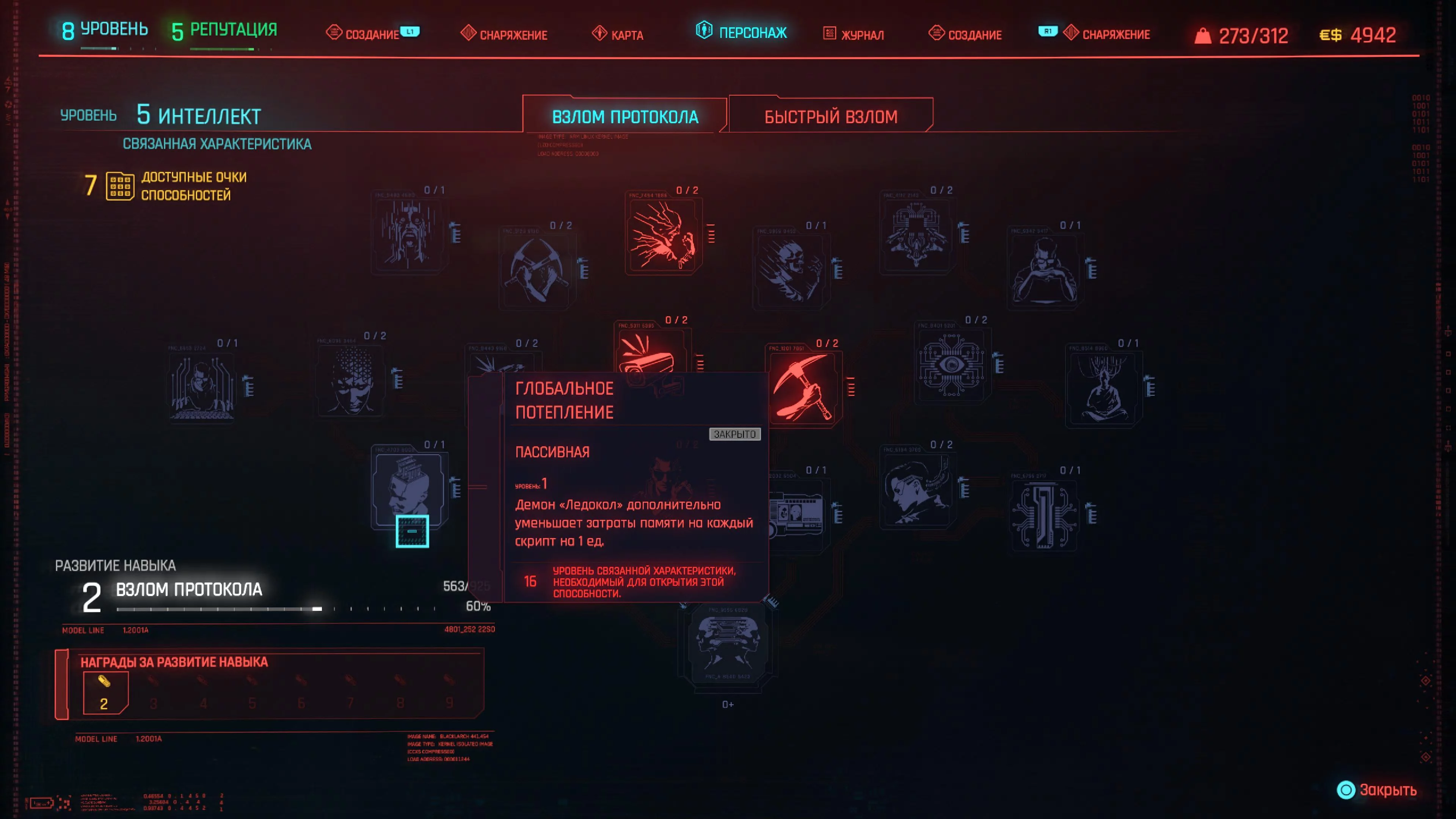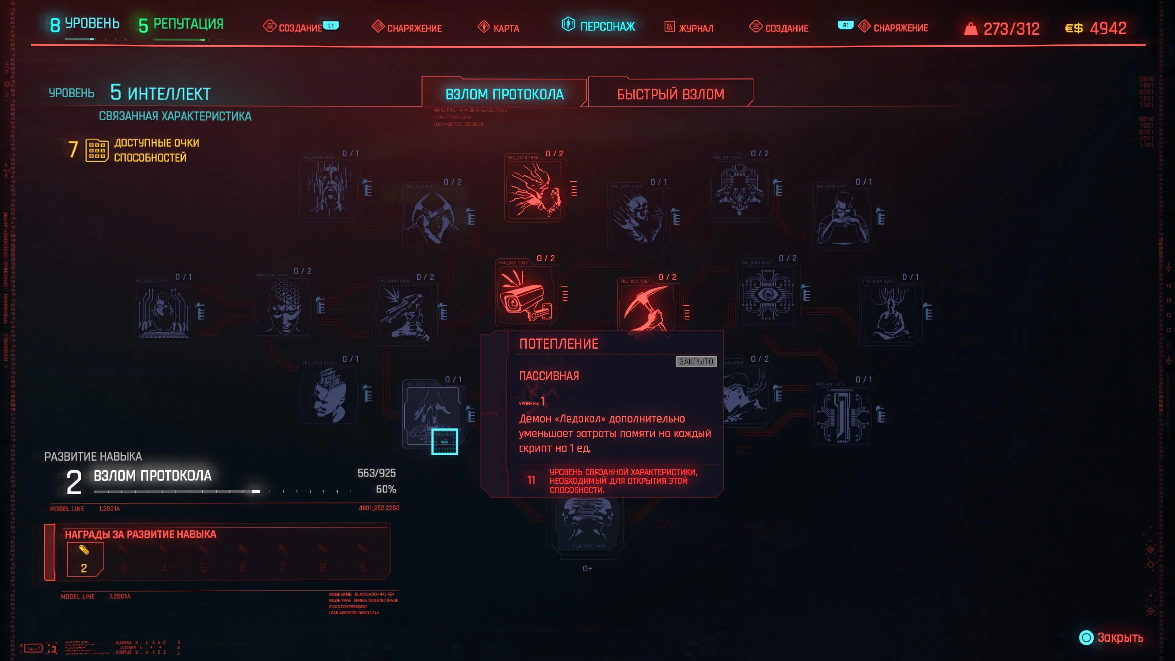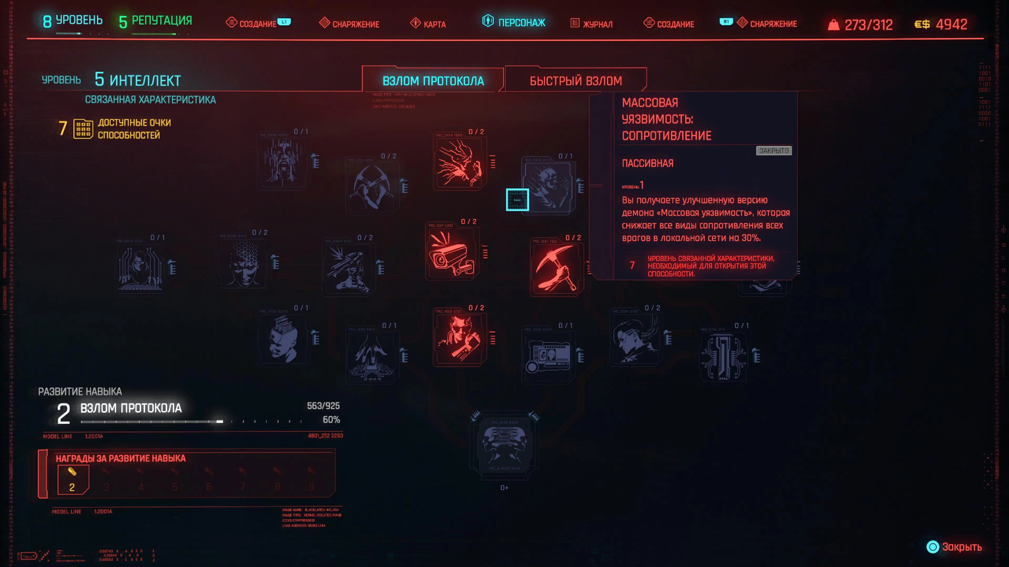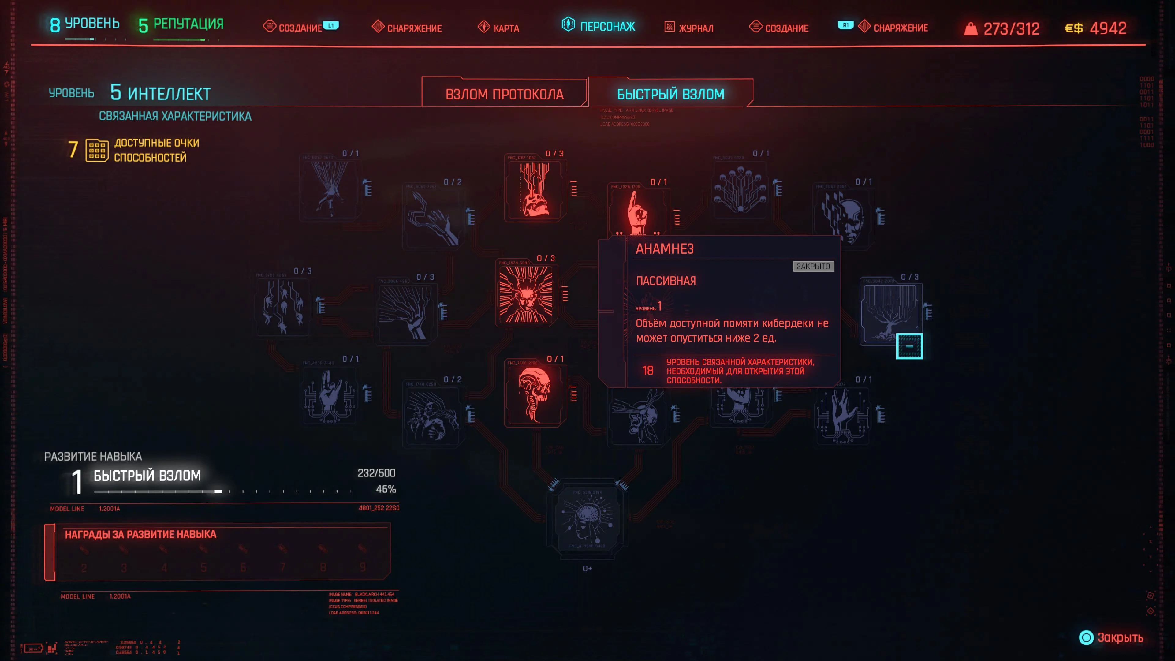 В мире Cyberpunk 2077 технологии — это оружие. Игроков, которые хотят заниматься взломом, называют нетраннерами — они должны сосредоточиться на увеличении интеллекта. Чем больше показатель характеристики «Интеллект», тем больший объем памяти кибердеки вам доступен для использования хакерских навыков. Думайте о памяти кибердеки как о мане в ролевых играх. Чем больше у вас памяти, тем больше навыков взлома вы сможете использовать.