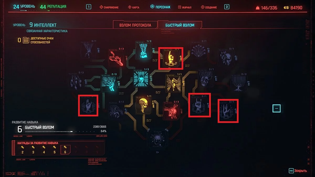 Вы также можете самостоятельно создавать редкие скрипты. Для этого вам нужно прокачать интеллект до 12 уровня. Затем зайдите в окно характеристик, нажать на «Интеллект» и найти навык во вкладке «Быстрый взлом» — «Школа взлома». Далее прокачивайте способности «Университет кодинга» и «Наследие Бартмосса». Они позволяют создавать эпические и легендарные скрипты. Если вам потребуются перки рангом пониже, то прокачайте навык «Справочник хакера».