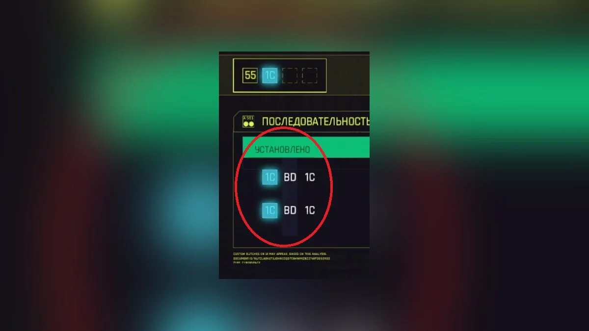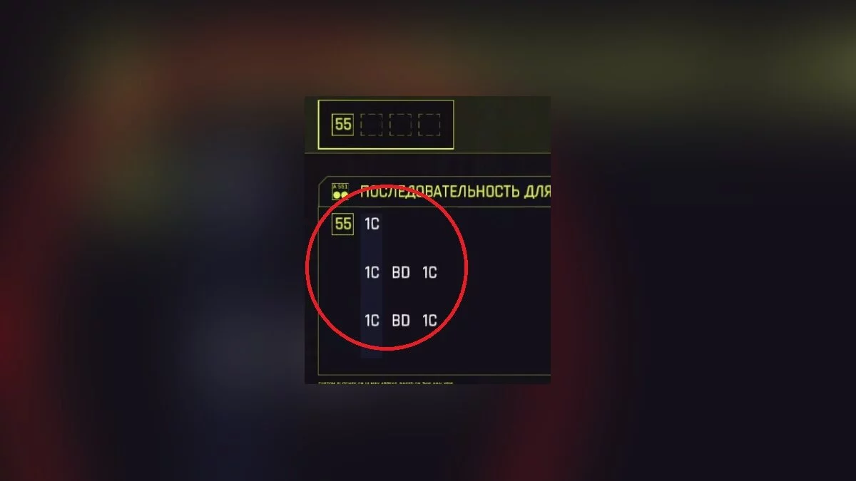 Обратите внимание, что в этих четырёх числах можно увидеть все три последовательности — «55-1С» и две «1С-BD-1C». Если, к примеру, в последовательности «55-1С» между наборами символов в окне ввода стояло «BD», то мы бы не получили награду. То есть, нужно не только в окне ввода проставить все символы из комбинации, но и соблюсти их строгий порядок.