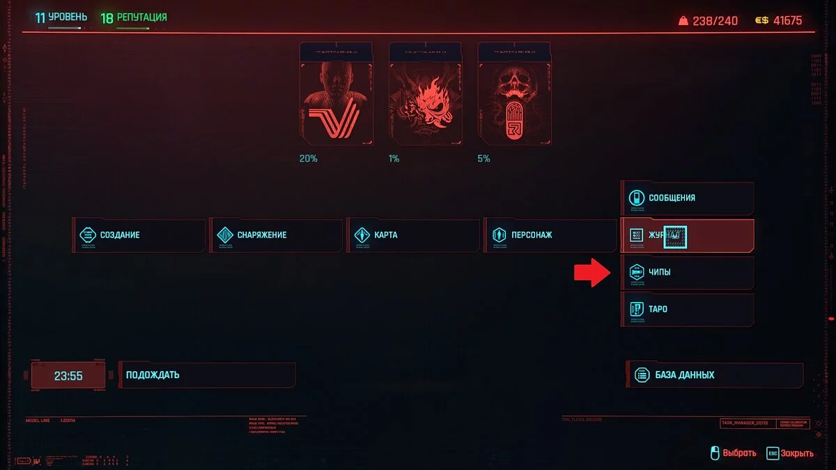 Нередко во время заданий и исследования мира вы будете находить зашифрованные чипы. У многих игроков может возникнуть проблема в том, как вообще найти их в интерфейсе игры. Чтобы найти чип, необходимо открыть следующее меню: