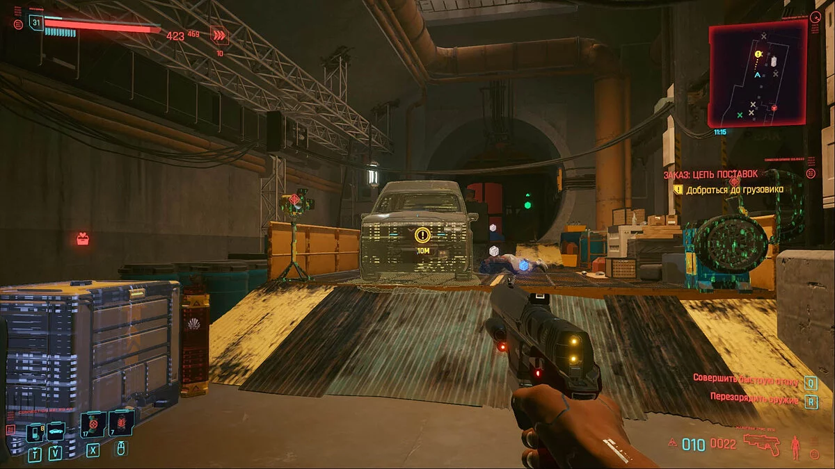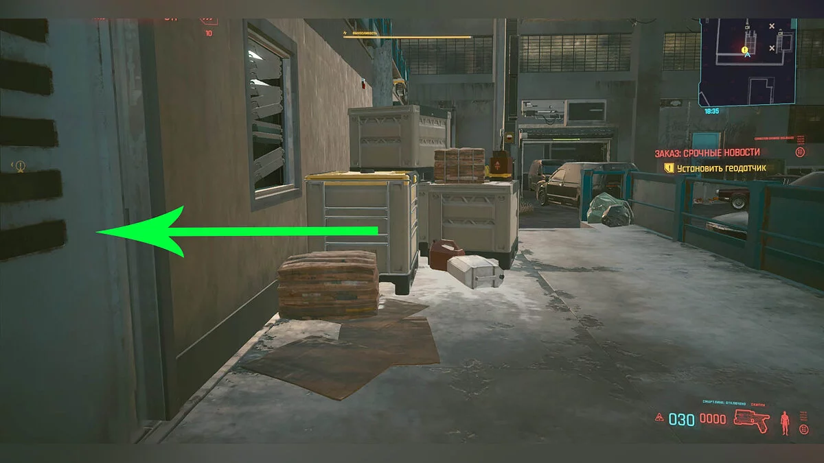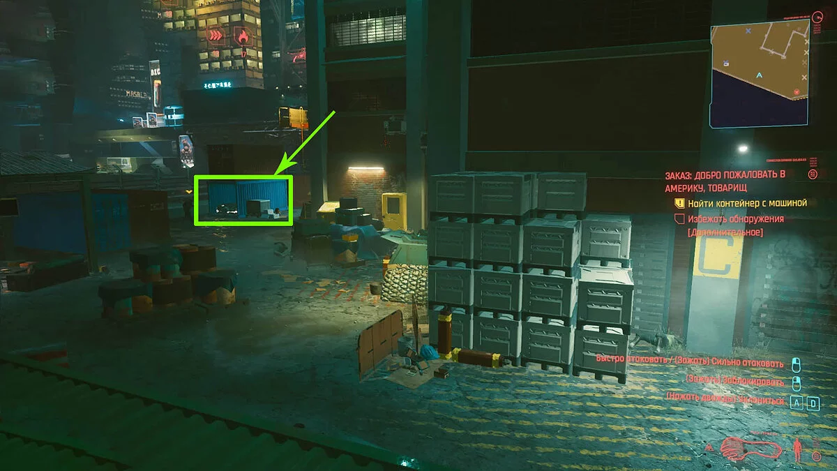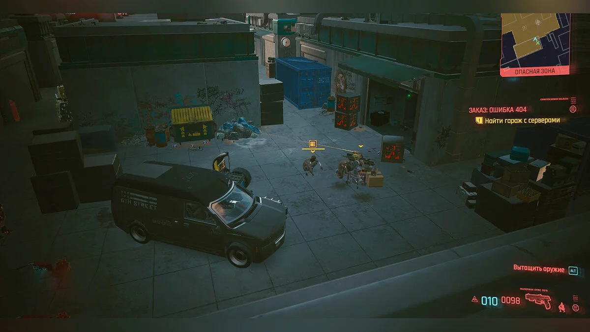 Этот заказ вы найдёте недалеко от предыдущего квеста Реджины Джонс. На большой охраняемой территории нужно отыскать контейнер с автомобилем и установить на него специальное устройство. Если вы обладаете киберимплантом «укреплённые сухожилия», то нет смысла пытаться войти на территорию через основной вход.
