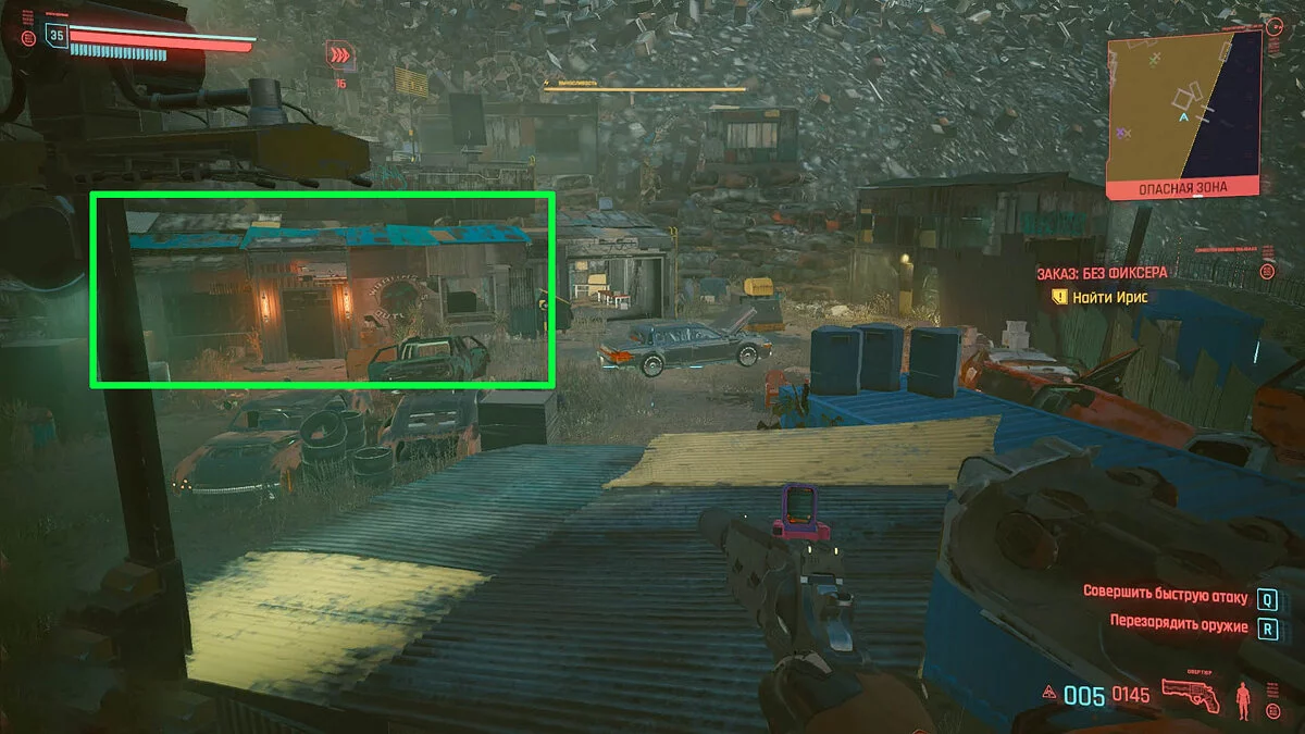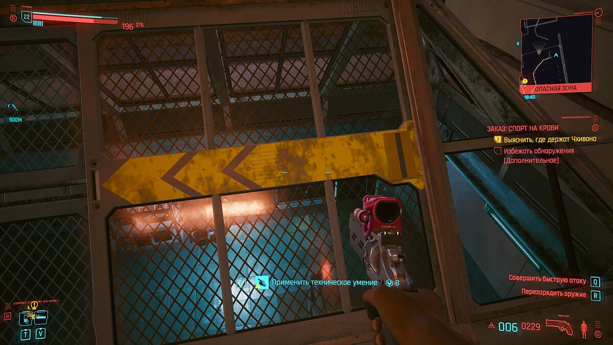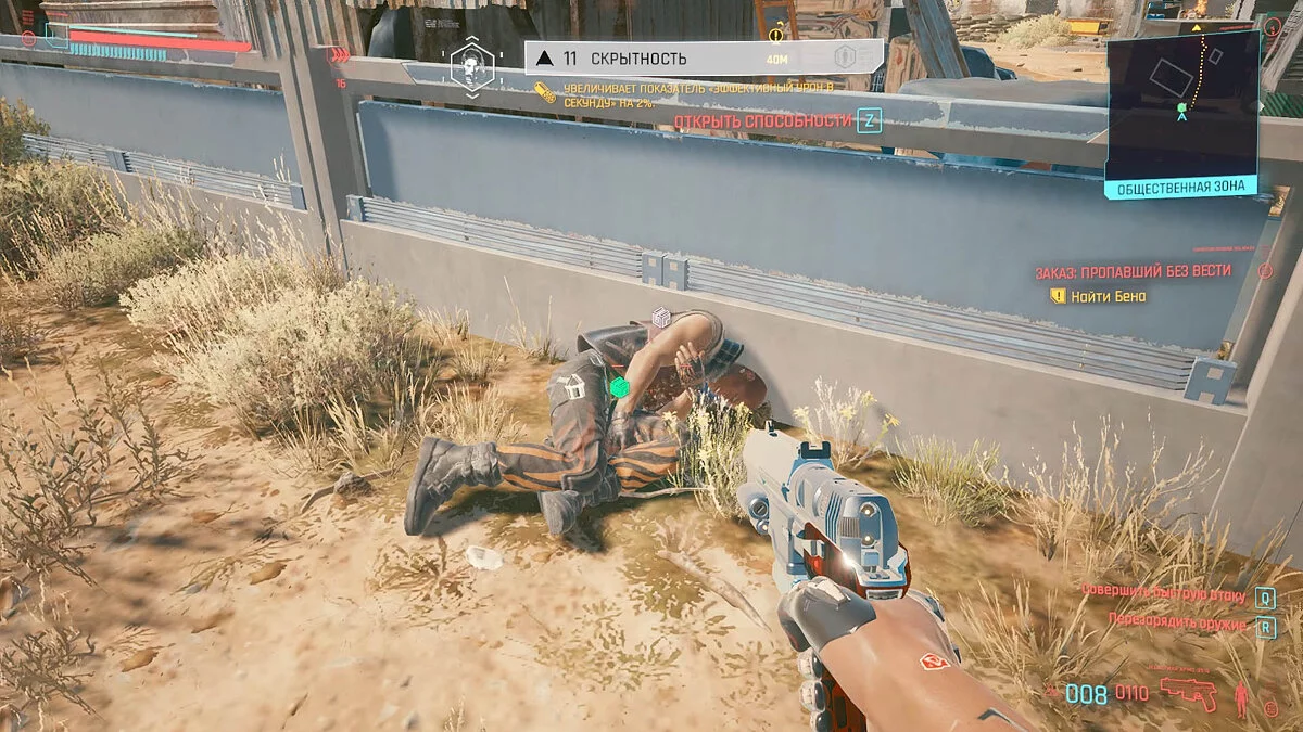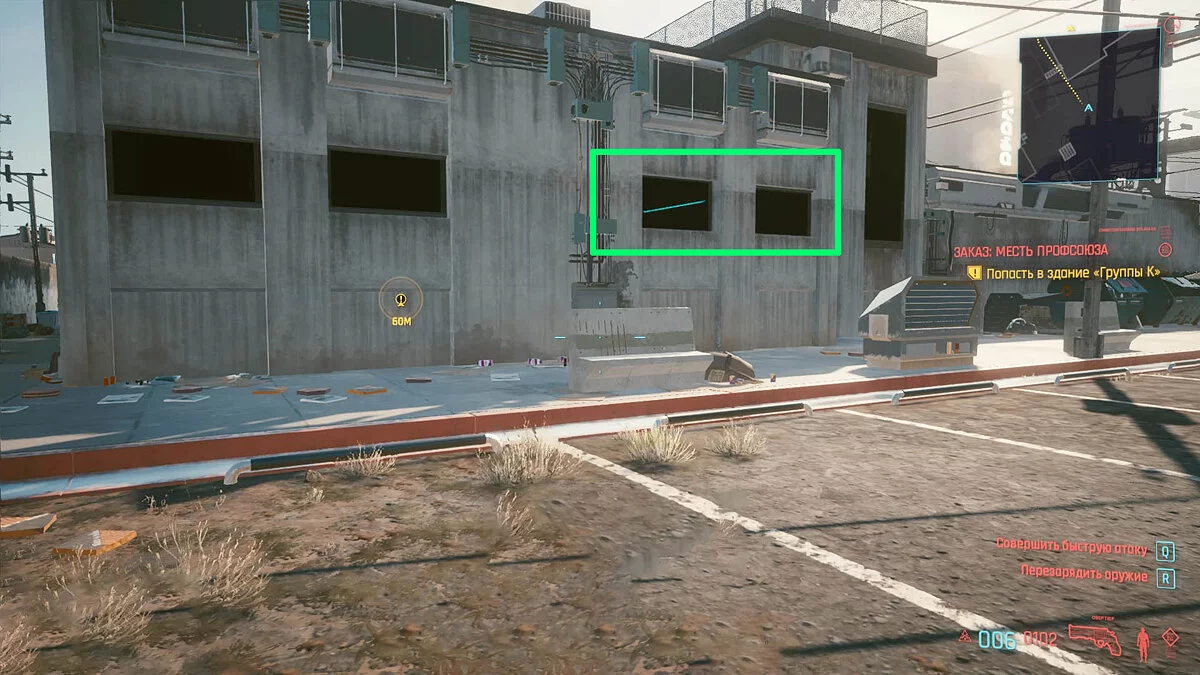 Этот заказ вы найдёте недалеко от предыдущего квеста Реджины Джонс. На большой охраняемой территории нужно отыскать контейнер с автомобилем и установить на него специальное устройство. Если вы обладаете киберимплантом «укреплённые сухожилия», то нет смысла пытаться войти на территорию через основной вход.