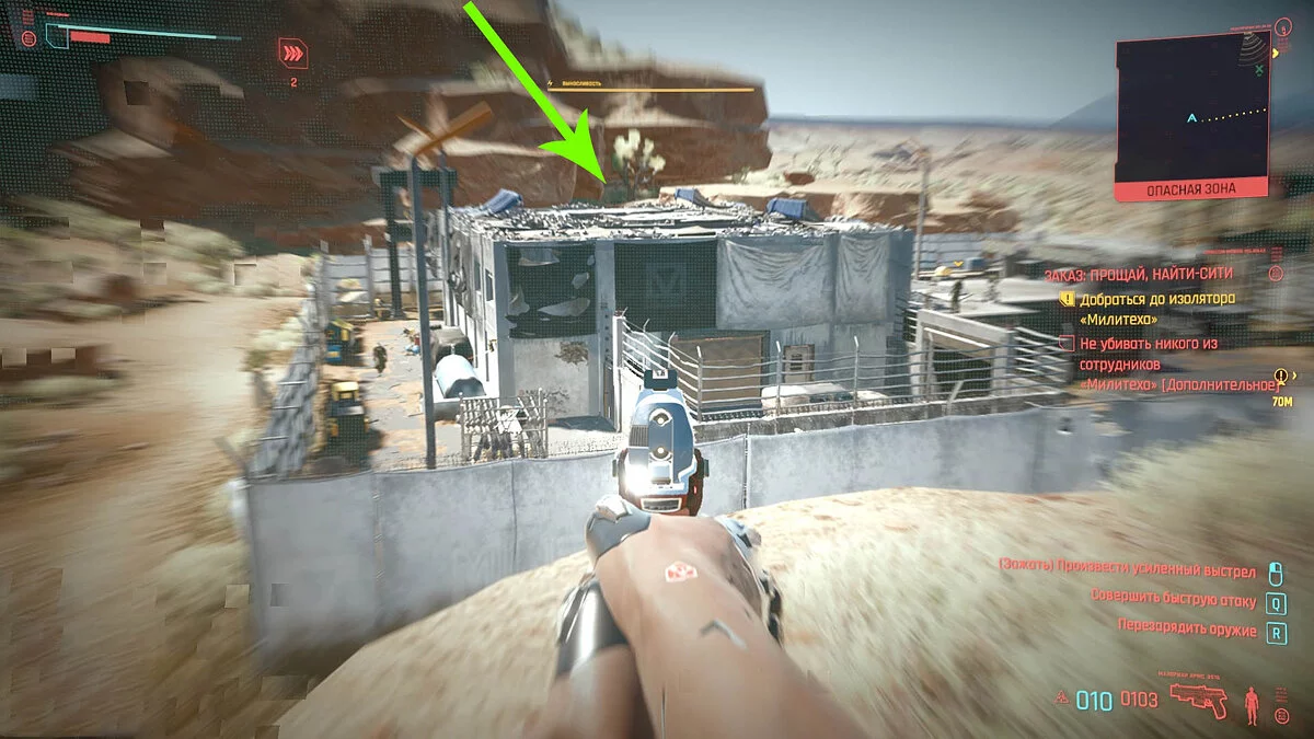 Осмотрите южную часть Пустоши и отыщите отмеченную на карте локацию. Вам нужно проникнуть в здание и освободить мужчину из подвала. Если хотите выполнить заказ по-стелсу, то будьте осторожны: вся территория вокруг здания заминирована!