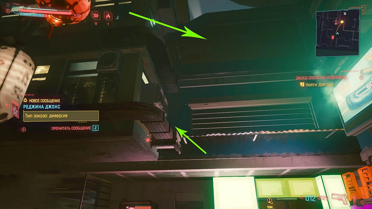 Заказ можно взять неподалеку от места, где вы припарковали грузовик в финале предыдущего квеста. Для освобождения клиента Реджины вам в любом случае придется дать бой киберпсиху. Этот противник использует только атаки ближнего боя, поэтому лучше всего держаться от него подальше и стрелять из мощного оружия. Не забывайте, что в ангаре есть несколько этажей. Вы также можете использовать закрытые комнаты в качестве укрытий.