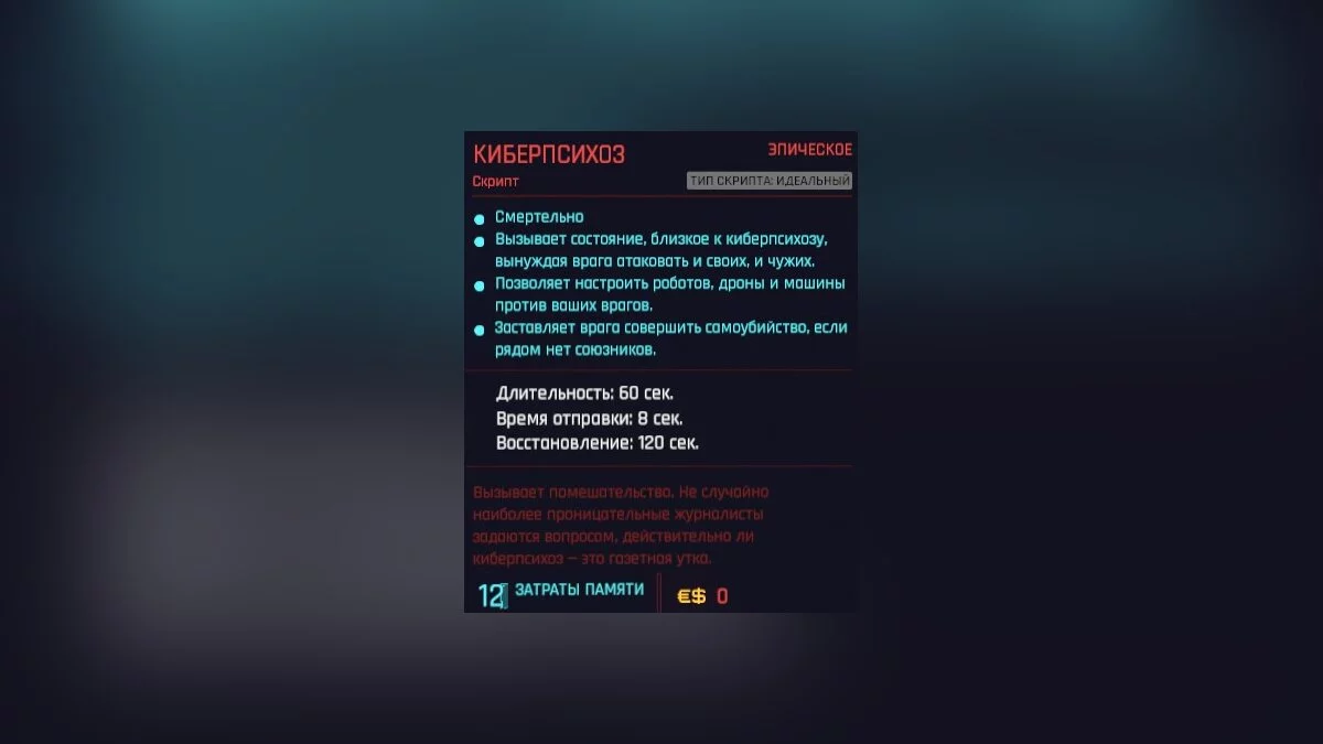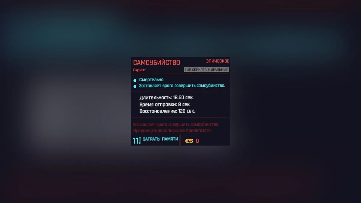 Заставляет противника совершить самоубийство и снижает стоимость последующего использования скриптов.