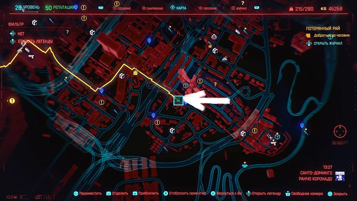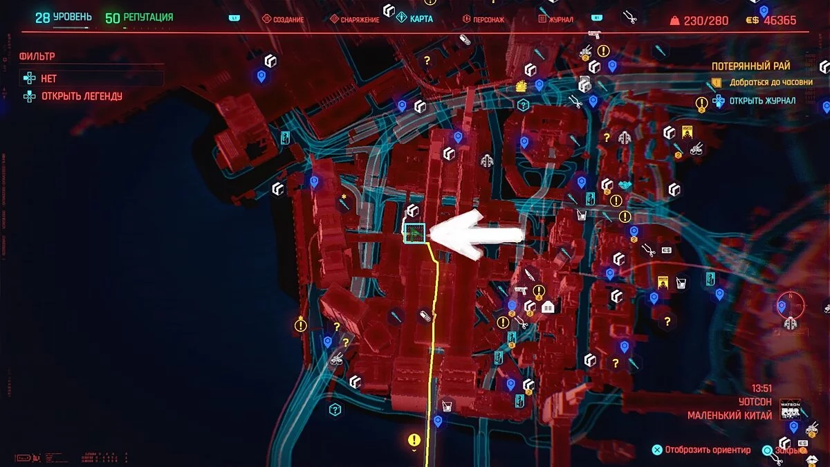 - Непробиваемый корпоративный пиджак. Его место указано на карте. Вам нужен тот вариант, в котором будут 4 слота для модификаций.