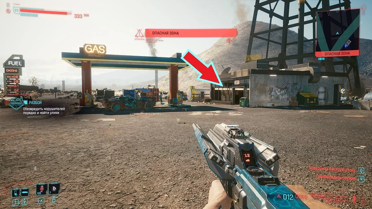 Перебейте противников и заберите чип из ящика на заправочной станции.