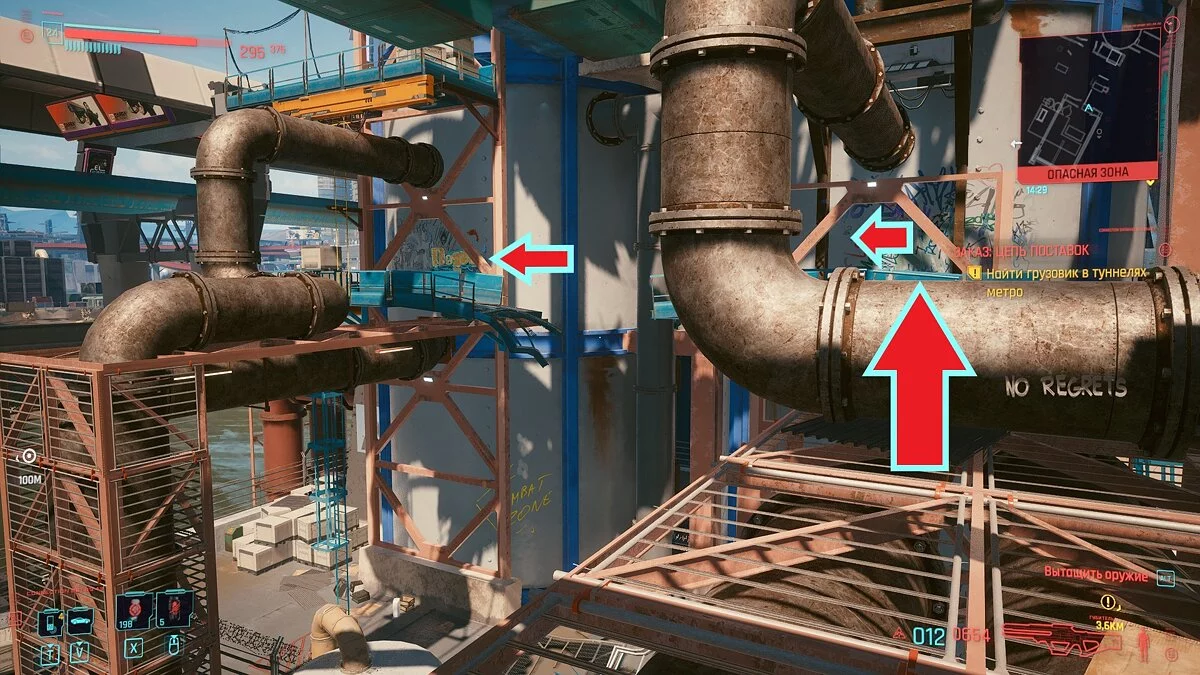 Если у вас нет двойного прыжка, тогда вы можете пробраться на закрытую территорию через стройку.