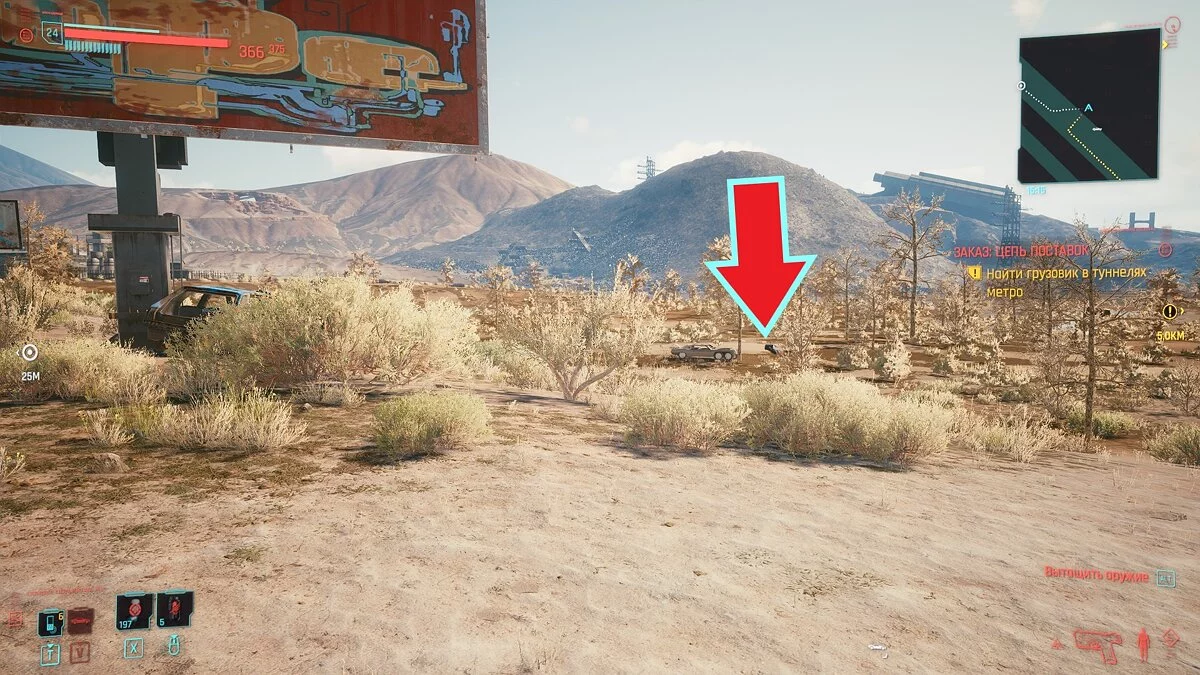 Далее следуйте по карте к билборду и убейте дрона рядом с машиной.