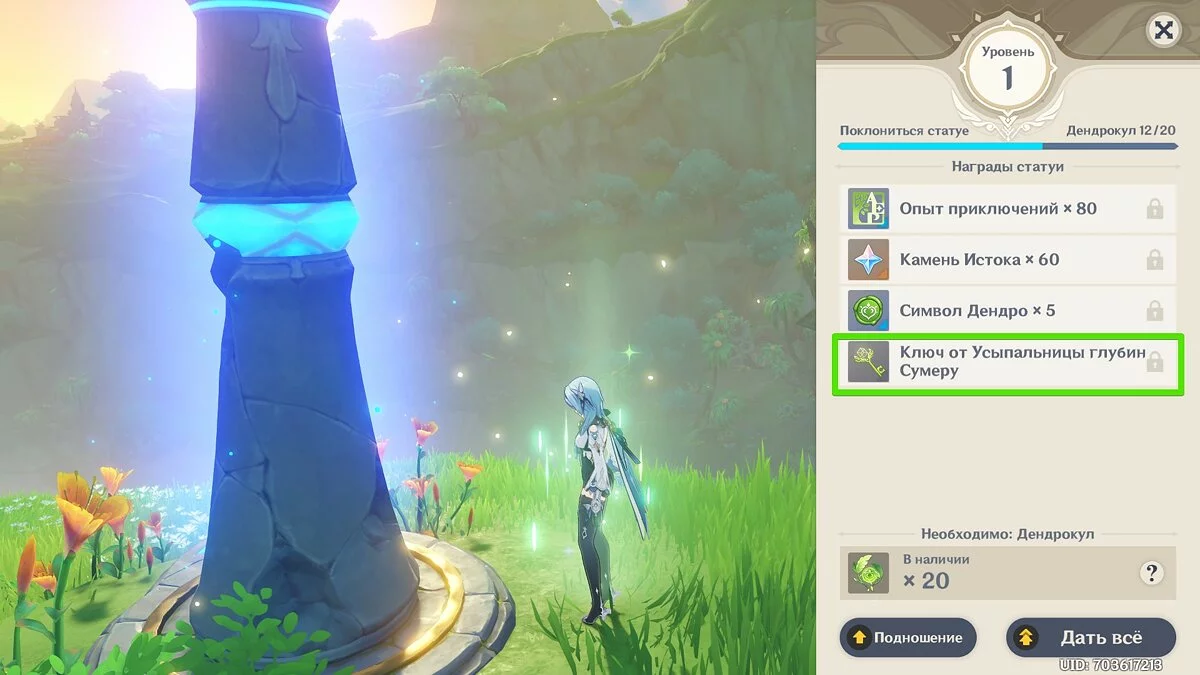 - За второй, четвертый и шестой уровни статуи Дендро Архонта = 3 ключа (для прокачки потребуются дендрокулы, прочитайте наш гайд с картой их месторасположения).