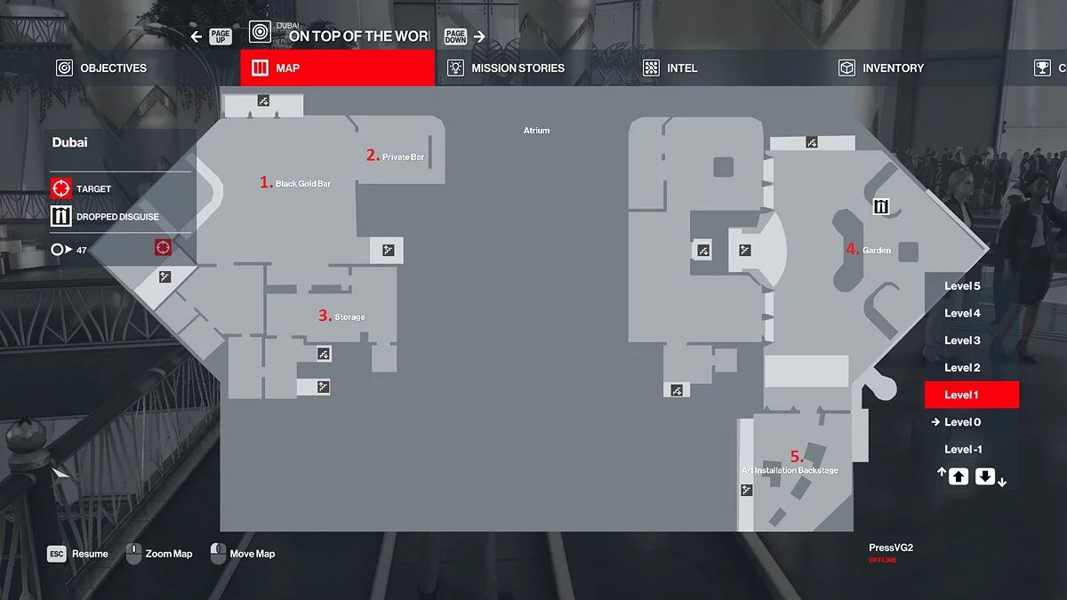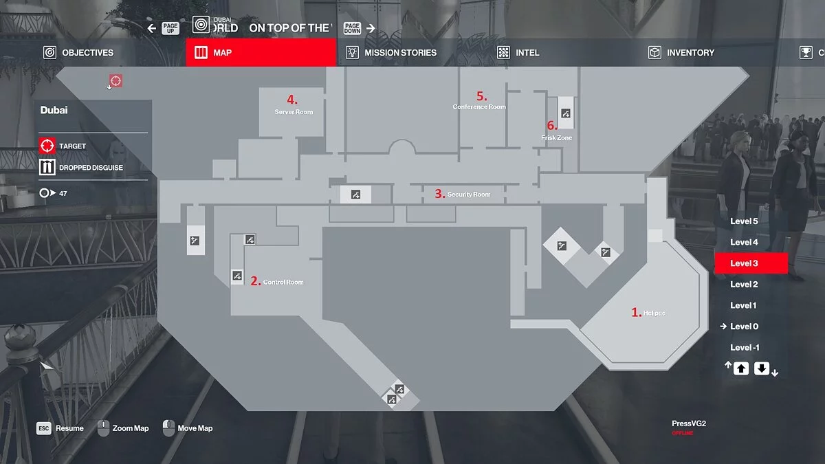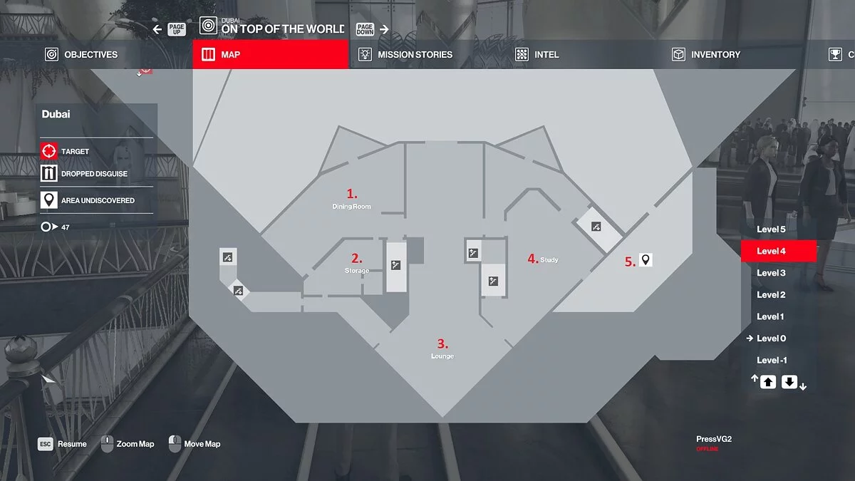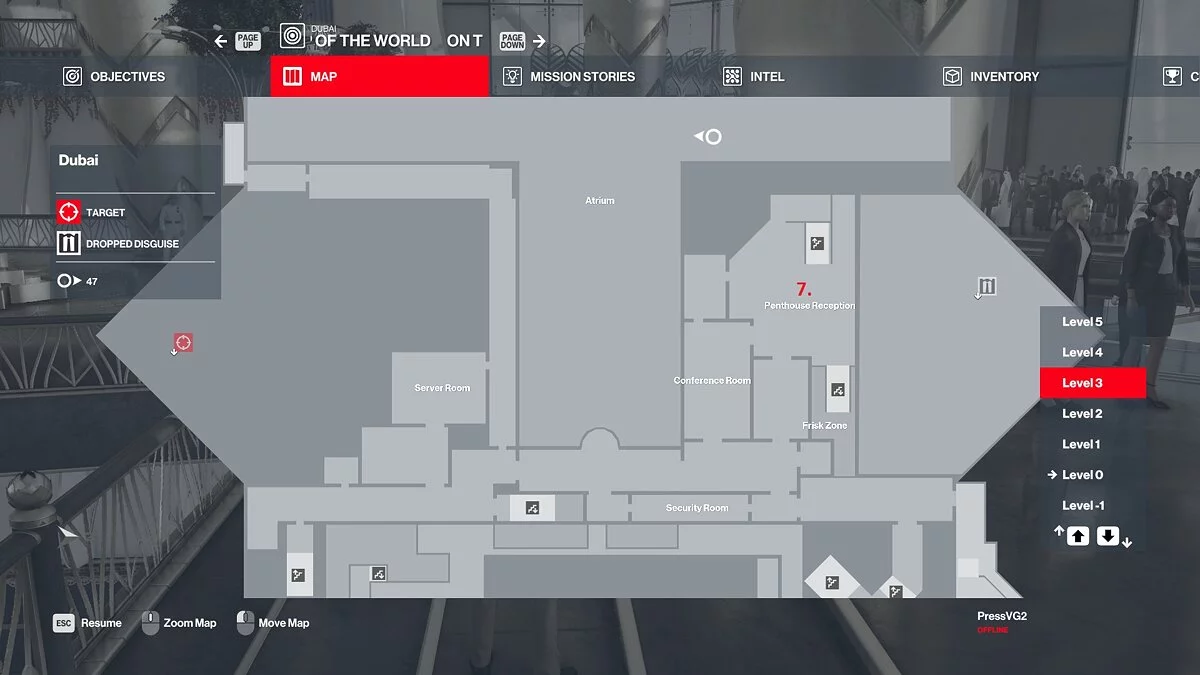 - Стойка регистрации пентхауса (Penthouse Reception): северо-восток локации. Чтобы попасть внутрь, нужна форма охранника пентхауса.