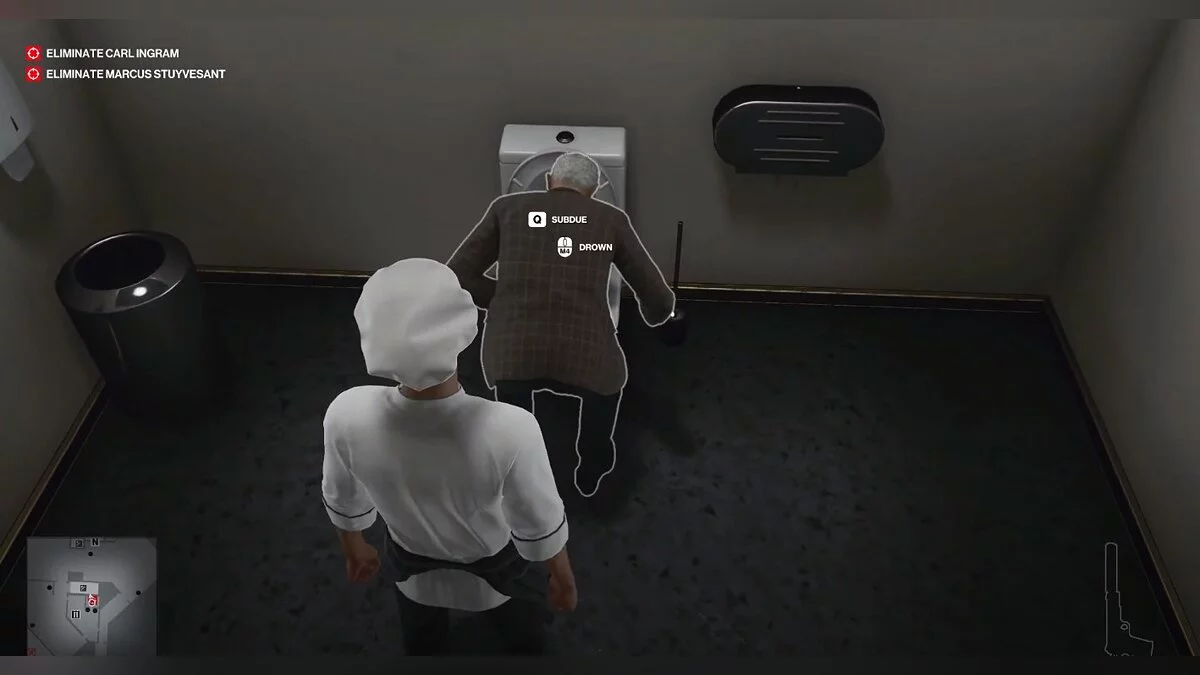 - Горячий (Hot One): замаскируйтесь под шеф-повара на четвёртом этаже пентхауса (Penthouse Floor 04). Можете бросить монетку в комнату, чтобы увести его подальше от охранников, а затем бесшумно убить;