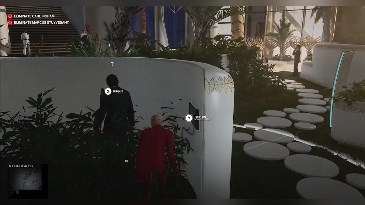- Познакомьтесь со Стуйвесантами (Meet the Stuyvesants): дочь Маркуса Стуйвесанта (Marcus Stuyvesant) — Корнелия (Cornelia) появилась на мероприятии в Дубае. Она хочет узнать, почему он должен скрываться. Нам нужно устроить их встречу. Корнелию можно найти на 1 уровне карты, в баре. Она разговаривает с Люси Филлипс (Lucy Phillips). В какой-то момент Люси отойдет выпить вина. Вам придётся переодеться в официанта и отравить ее бокал с красным вином. Крысиный яд можно найти в комнате для персонала (Staff Room). Люси сделает глоток и побежит в ванную, тогда у Маркуса будет шанс встретиться со своей дочерью. После того, как они поговорят, вы завершите испытание;
