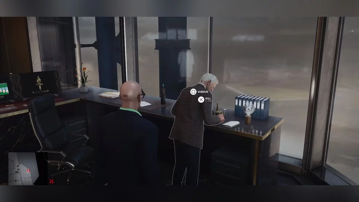 - Бизнес с летающими обезьянами (Flying Monkey Business): возьмите карту-ключ для эвакуации (Evacuation Keycard) из сейфа в комнате безопасности (Security Room) на 3 этаже (код сейфа: 6927). Затем используйте карту эвакуации на стеновых панелях на 4 и 5 этажах пентхауса. Это спровоцирует побег ваших целей. Сначала они соберутся на вертолётной площадке. Затем они вернутся в пентхаус, чтобы надеть костюмы для прыжков с парашютом и направятся к месту прыжка на крыше. Вы должны положить банановую кожуру (banana peels) на пол, чтобы они соскользнули (сделайте это там, где они будут спрыгивать). Вы можете найти банан в той же комнате безопасности на третьем этаже, где вы получите карту-ключ для эвакуации. Ещё один банан находится в комнате для собраний персонала (Staff Meeting Room) на 0 этаже. Экипируйте банан и положите кожуру на пол, не бросайте. Когда одна из целей наступит на неё, они поскользнутся и будут нокаутированы. Прежде чем класть банановую кожуру, сделайте сохранение, чтобы переиграть в случае неудачи;
