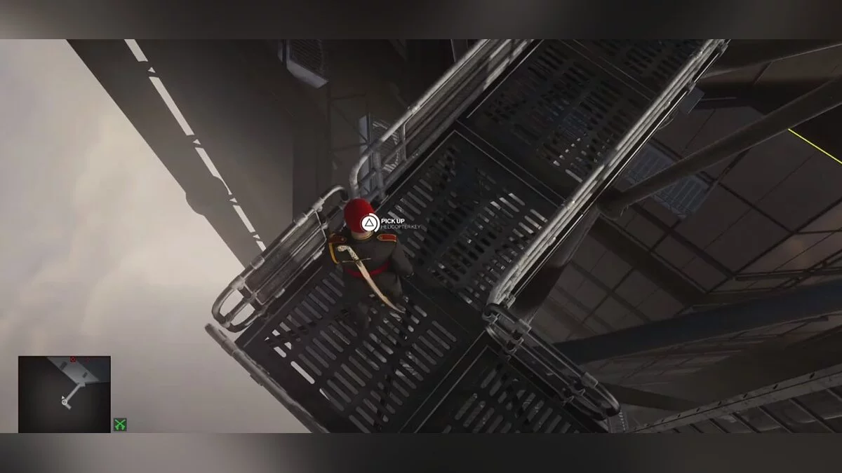 - Готовность ротора (Rotor Ready): требуется найти ключ от вертолёта (Helicopter Key). Идите на вертолётную площадку на 3 этаже. В центре передней части вертолётной площадки есть лестница, ведущая вниз (обычно там стоят двое охранников). Спуститесь вниз, на проходе будет ключ (2 этаж, там где находятся качающиеся мишени для метания ножей);