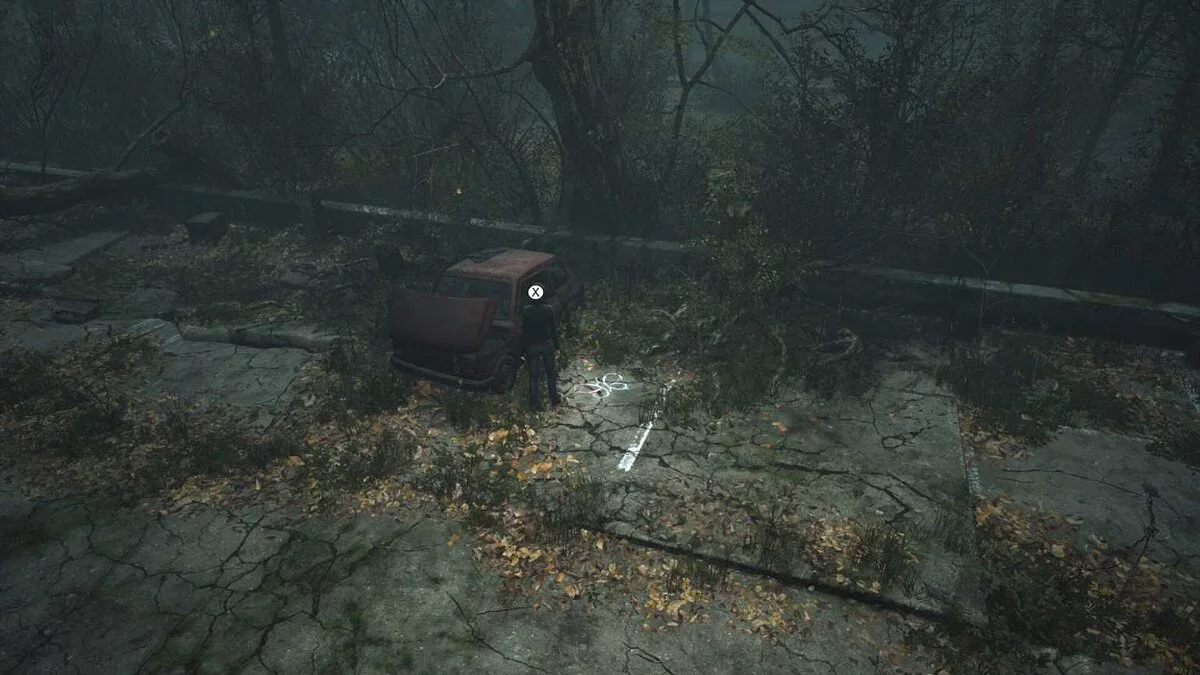 Парковка перед отелем довольно большая, но вы можете подойти прямо к двери. Вы обнаружите, что двери отеля заперты, а дверная ручка отсутствует. Справа будет ещё одна запертая дверь без ручки. Это путь к главному входу, так что теперь ваша цель — пройти в эту область. Для этого вам необходимо осмотреть парковку. Нам нужно найти сломанную машину, расположенную слева.