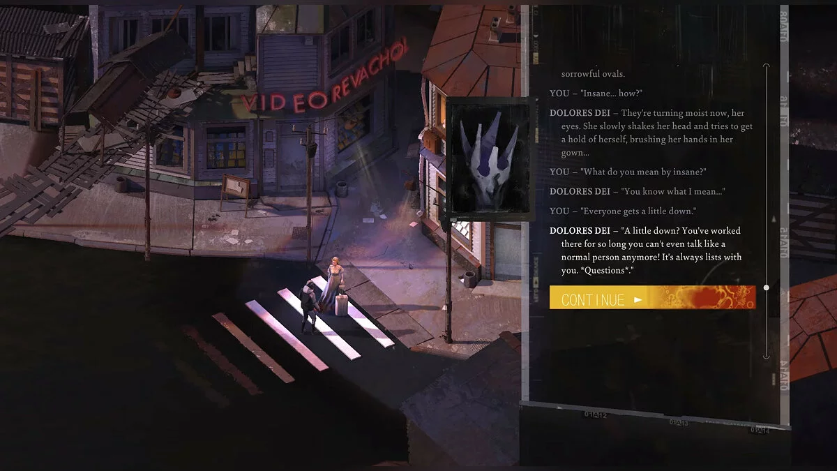 После короткого диалога задание будет завершено, однако игрок сможет вернуться к алкоголику и снова обсудить свои дела с ним. Ближе к концу истории в разговоре с Долорес Дей игрок может выбрать ответ про деньги и увидеть расширенный диалог с девушкой.