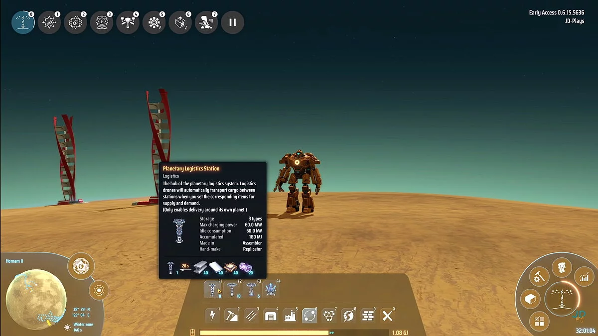 Завершив исследование, вы откроете планетарную логистическую станцию (Planetary Logistic Station) и возможность производить дронов (Drones) в сборщиках.