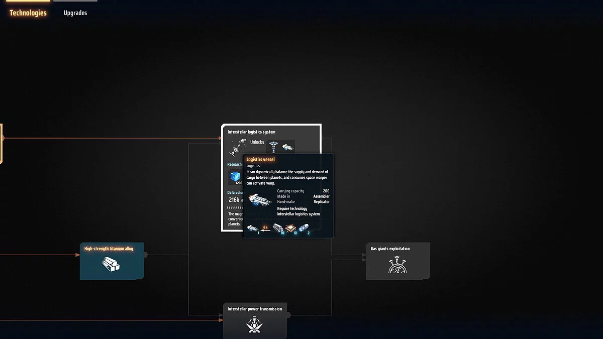 Долго так продолжаться не может, поэтому Dyson Sphere Program предлагает перевозить ресурсы при помощи технологии «межзвёздная логистическая система» Interstellar Logistic System (потребуются жёлтые кубы). Завершив исследование, вы откроете межзвёздную логистическую станцию (Interstellar Logistic Station) и возможность строить полноценные космические суда (Logistics Vessel) в сборщиках (Assembler).