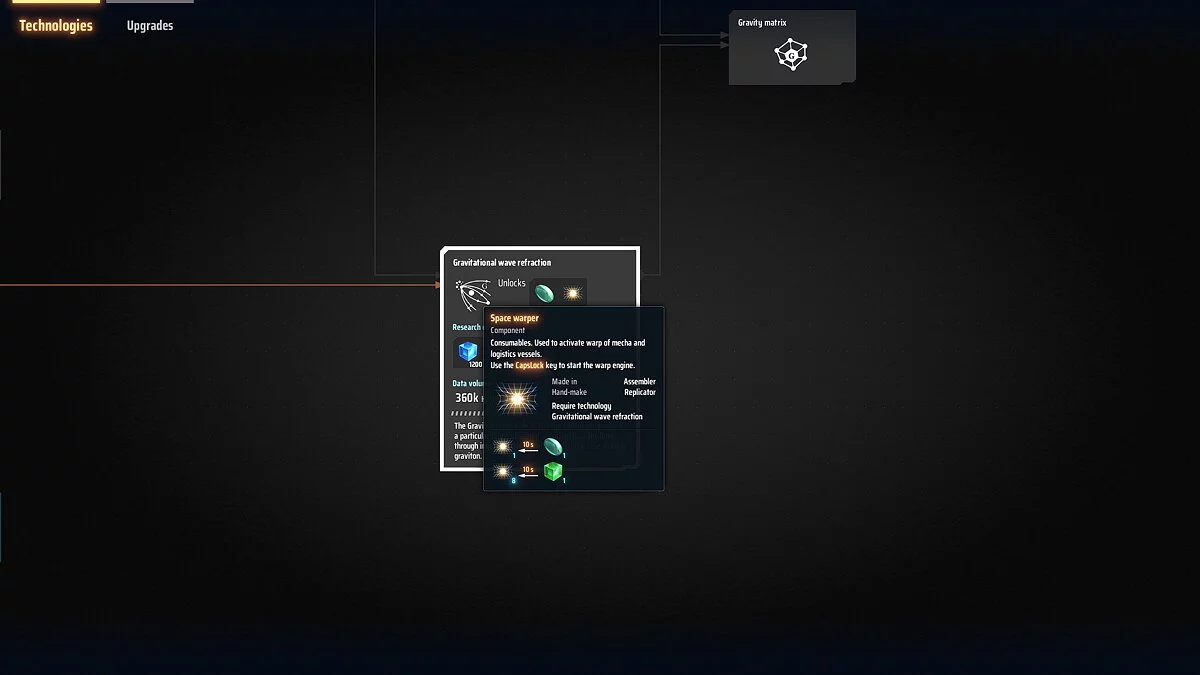 Есть только одно но. Для перехода в варп-пространство из одной системы в другую логистическим судам (Logistics Vessel) нужен космический варпер (Space Warper) — очень редкий ресурс, расходуемый по одному за прыжок. Добыть его не так-то и просто, потребуется перерабатывать дефицитные гравитационные линзы или зелёные кубы. Только вместе с ним корабли смогут привезти особо редкие ресурсы из других звёздных систем.