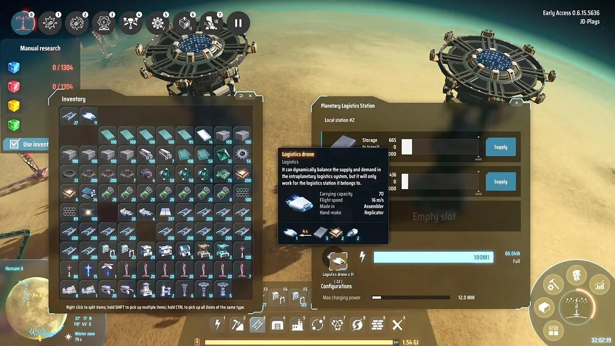 На данном этапе развития, логистические станции и дроны обеспечат переброску ресурсов только на той планете, на которой находятся. Чтобы маршрут транспортировки заработал, нужно 2 станции, одна — в точке отправки, другая — в точке приёма.