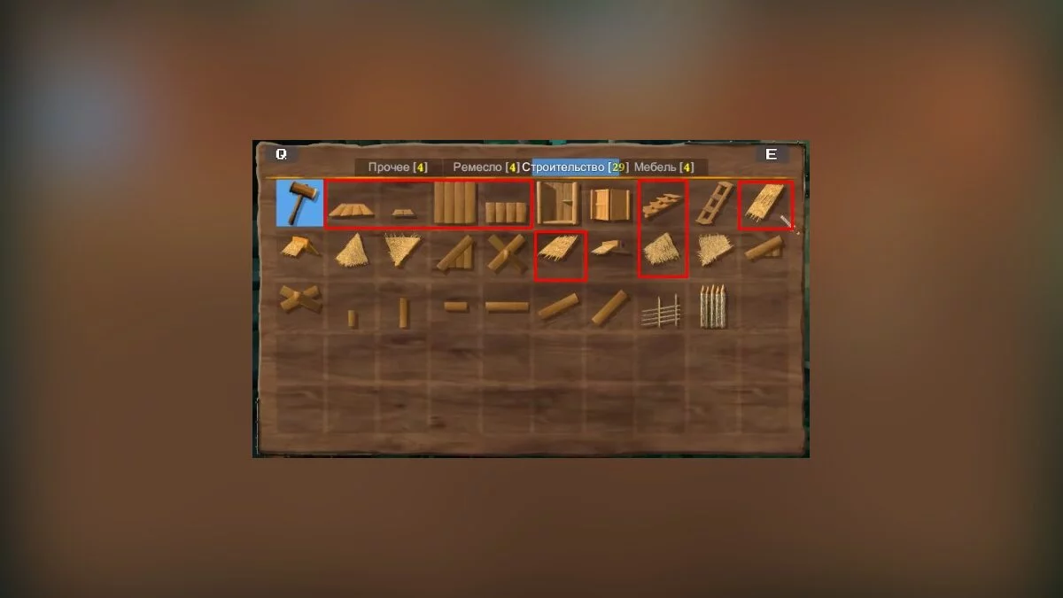 - Выберите молот, нажмите правую кнопку мыши и достройте найденный дом, выбрав в списке крафта нужные элементы: пол, стены, потолок. Сама система строительства весьма интуитивна и не вызывает сложностей. Если у вас все же возникли вопросы — листайте ниже, мы расскажем подробно о том, как строить стены, пол и крышу дома. Проявите фантазию, при желании поставьте фундамент дома на вертикальные брусья. Также молотом можно отремонтировать сломанные участки;