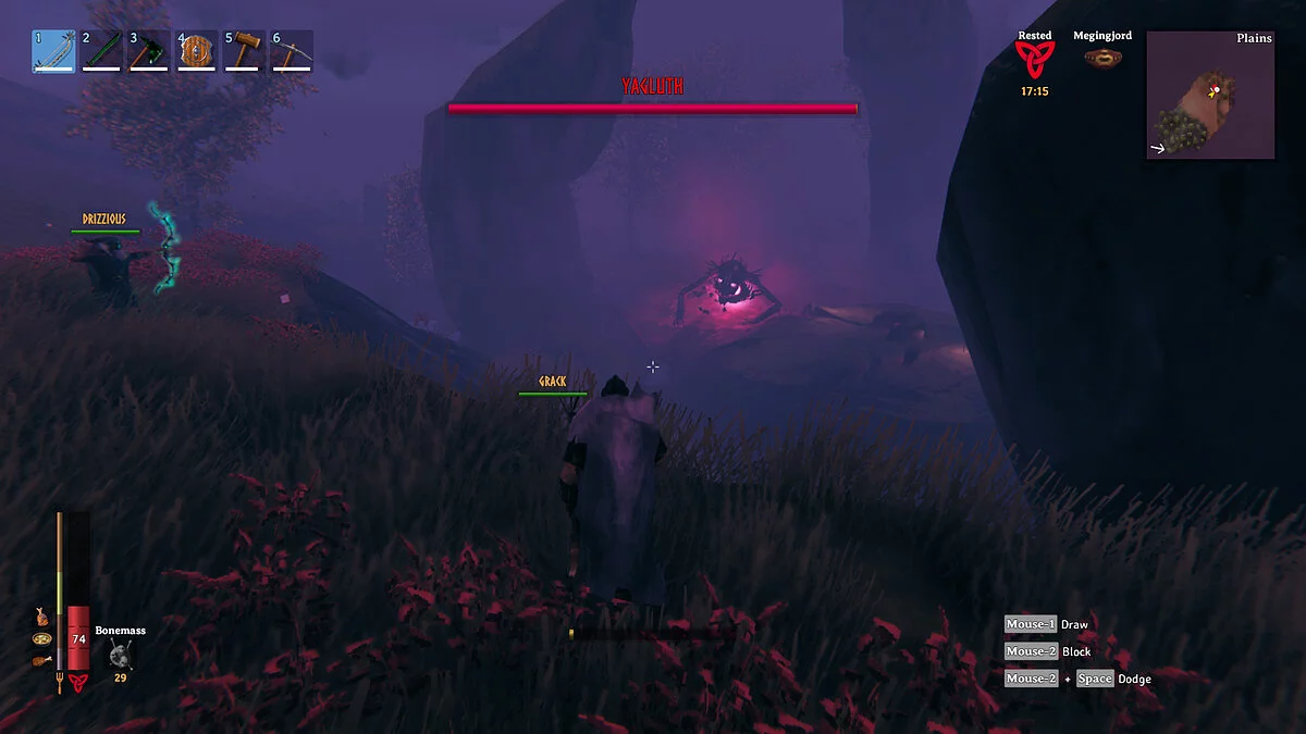 Что можно получить: «трофей: Масса костей» (Bonemass Trophy) и «дужку» (Wishbone). Активация умения трофея позволяет на 5 минут (откат умения 20 минут) получить повышенное сопротивление физическому урону (дробящему, колющему и режущему). Дужка позволяет находить секреты и серебро.