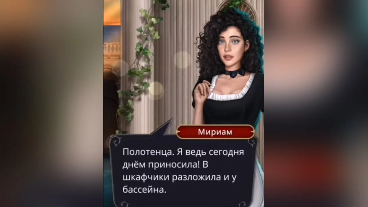 Если по возвращении в замок отношения с Владом на хорошем уровне, то Ноэ расскажет девушке о том, что хозяин замка сейчас плавает в бассейне. Мириам попросит отнести Владу полотенца.