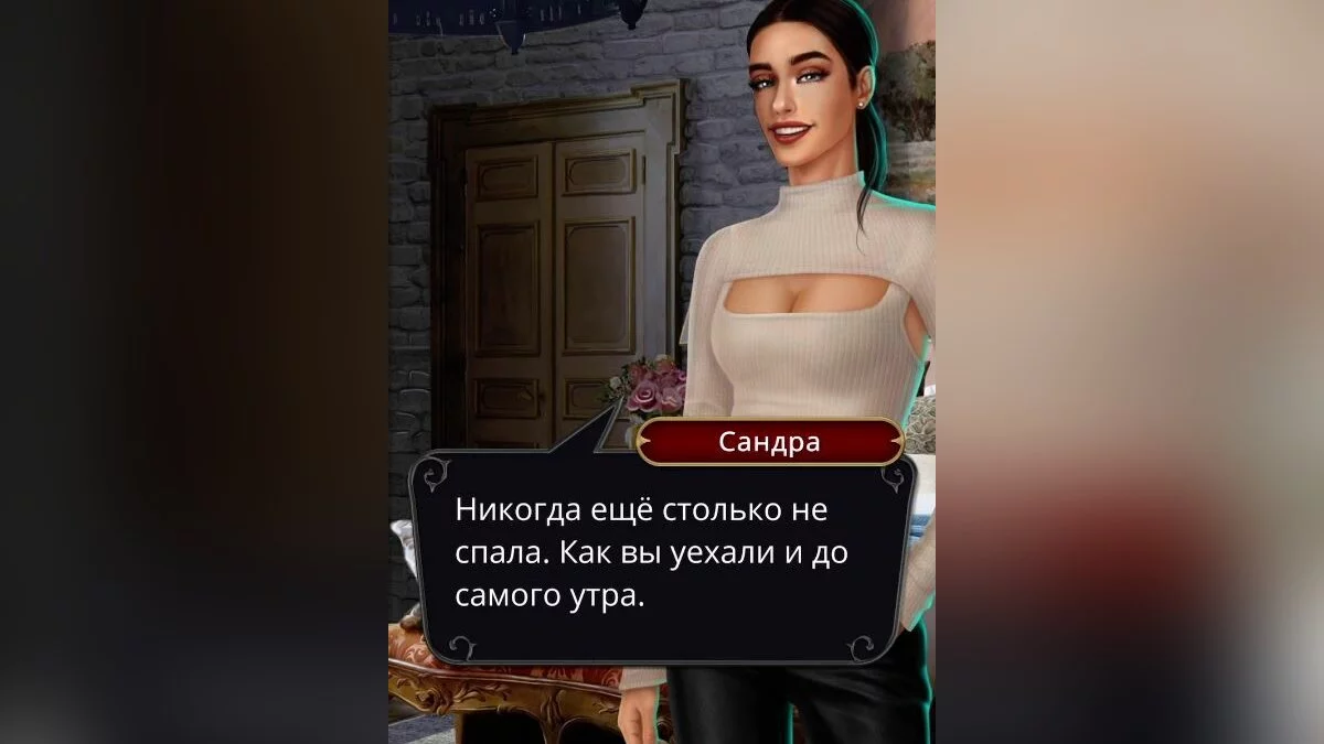 В зависимости от выбранного ранее пути разговор с Сандрой может быть разным. Девушка спросит об отношениях главной героини с одним из героев (Влад, Лео, Ноэ или с собой) в зависимости от уровня близости на данный момент в истории. Если отношения с Сандрой на высоком уровне, то игроку откроется дополнительная сцена, в которой девушки буду обсуждать воздушные поцелуи.