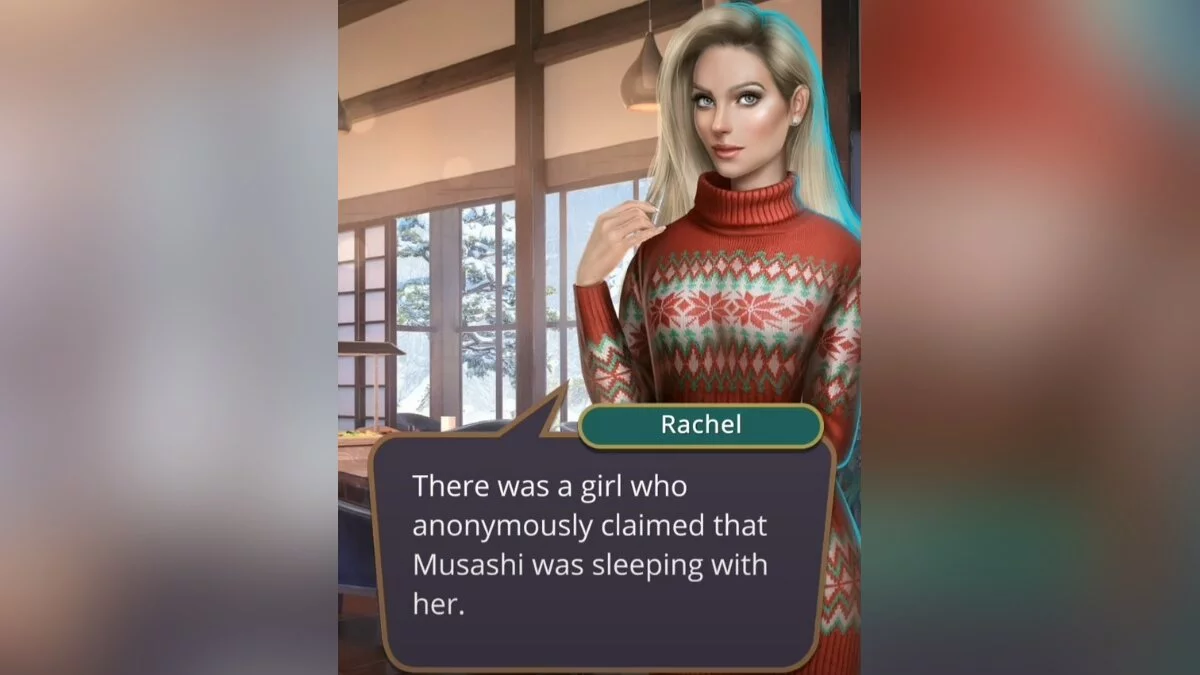 Вы узнали информацию о Мусаши, которую тот пытался скрыть. Оказывается, из списка сотрудников компании пропало три женских имени. Возможно, это связано с анонимным признанием. Что скажете? «То есть…»