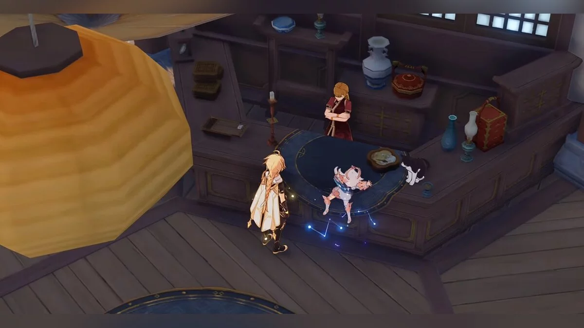 - Последнее задание называется «Праздничная проблемка». Отправляйтесь в хижину Бубу и поговорите с травником по имени Гуй, он попросит вас отнести лекарства местным жителям. Следуйте указателям под мини-картой, чтобы доставить лекарства в нужные места, а затем возвращайтесь к травнику. Теперь ему нужно дать небесный фонарь. Следующей ночью вам нужно будет запустить этот фонарь, чтобы завершить квест. После этого вы получите 30 примогем, 20 000 моры и 100 праздничной жары.
