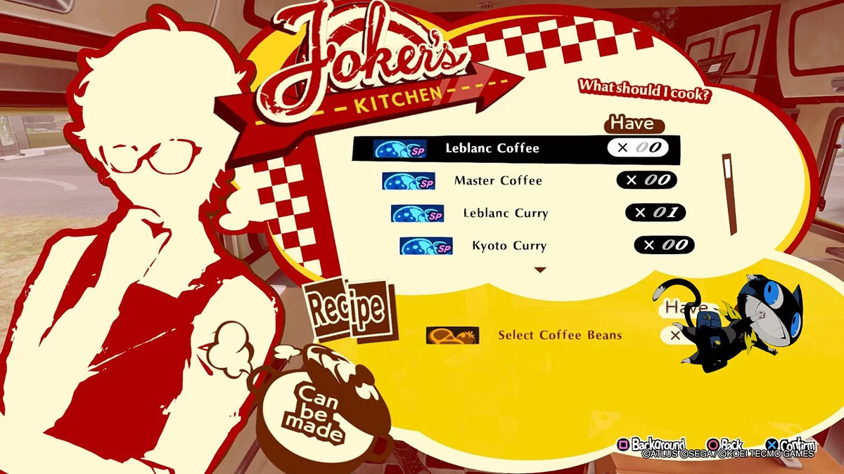 - Мастер кофе (Master Coffee) — 30 августа (August 30th) завершите запрос «Вызов вора: Мона» (A Thief's Challenge: Mona), чтобы получить рецепт. Ингредиенты: отборные кофейные зерна (Select Coffee Beans). Эффект: восстанавливает 50 очков навыка одному союзнику.