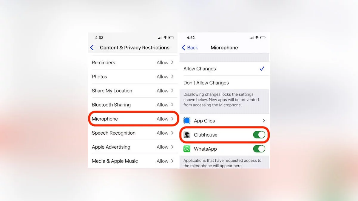 - Выберите раздел «Микрофон» и разрешите приложению Clubhouse использовать его.