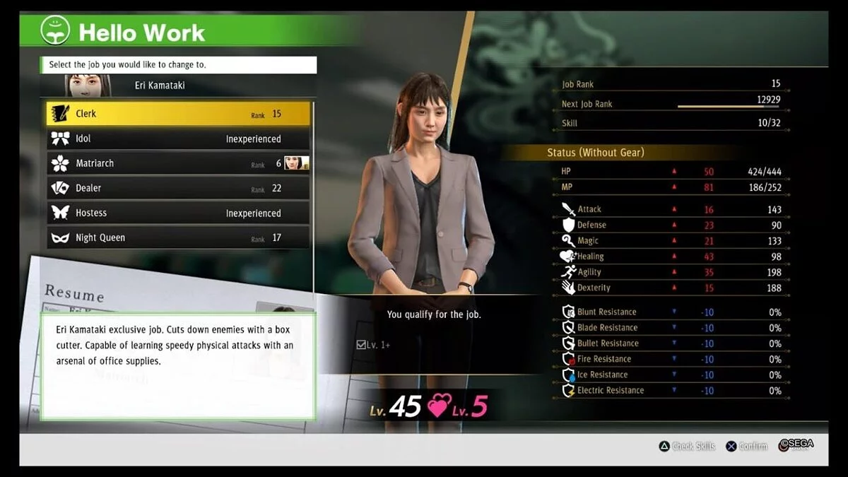 Однако у каждой профессии есть два стата навыков персонажа, которые будут доступны, даже если вы переключитесь на другую профессию. Некоторые посредственные профессии стоят того, чтобы работать над их прокачкой, только ради получения особых навыков для персонажа. Каждый член отряда получает уникальные навыки на каждом пятом уровне персонажа. Их можно применять вне зависимости от профессии, а Касуга получит дополнительные навыки после прохождения мини-игры «Управление компанией», которое также откроет секретного игрового персонажа.