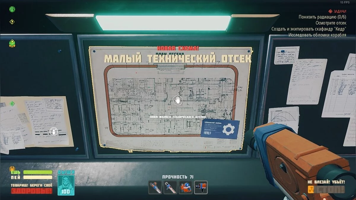 Может быть малым, средним и большим. Технический отсек можно построить, имея необходимые чертежи. Вы обнаружите их в зонах, открывшихся по сюжету. Первым вы найдёте план среднего технического отсека — он будет в пункте связи. Несколько позже вы окажетесь в техническом пункте, где будет чертёж малого отсека. Схема большого находится в военном отсеке — туда вам также необходимо попасть по сюжету.