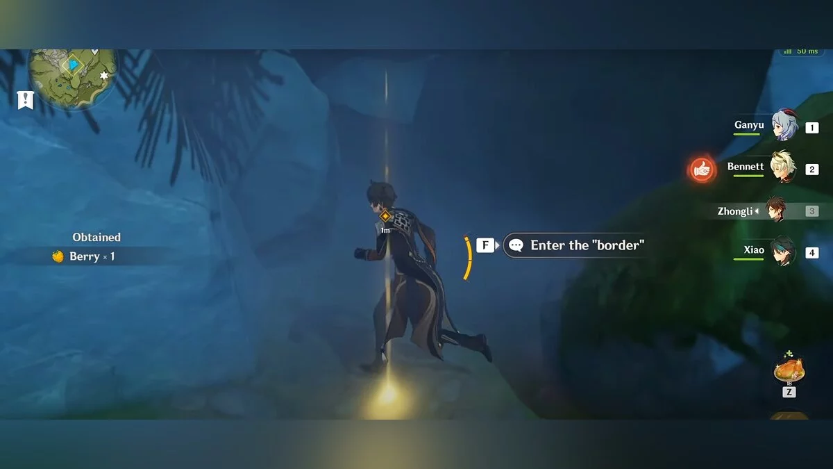 Далее следуйте за маркером, который приведёт к главному подземелью квеста — «Грань». Встретьтесь с Ху Тао на склоне Вуван. С этого момента вы сможете управлять новой героиней. Ху Тао наносит значительный урон огнём. В данном случае это будет особенно полезно, так как сражаться предстоит, в том числе, с ледяными врагами. Кроме того, огнём можно сжигать засохшие растения, преграждающие путь.