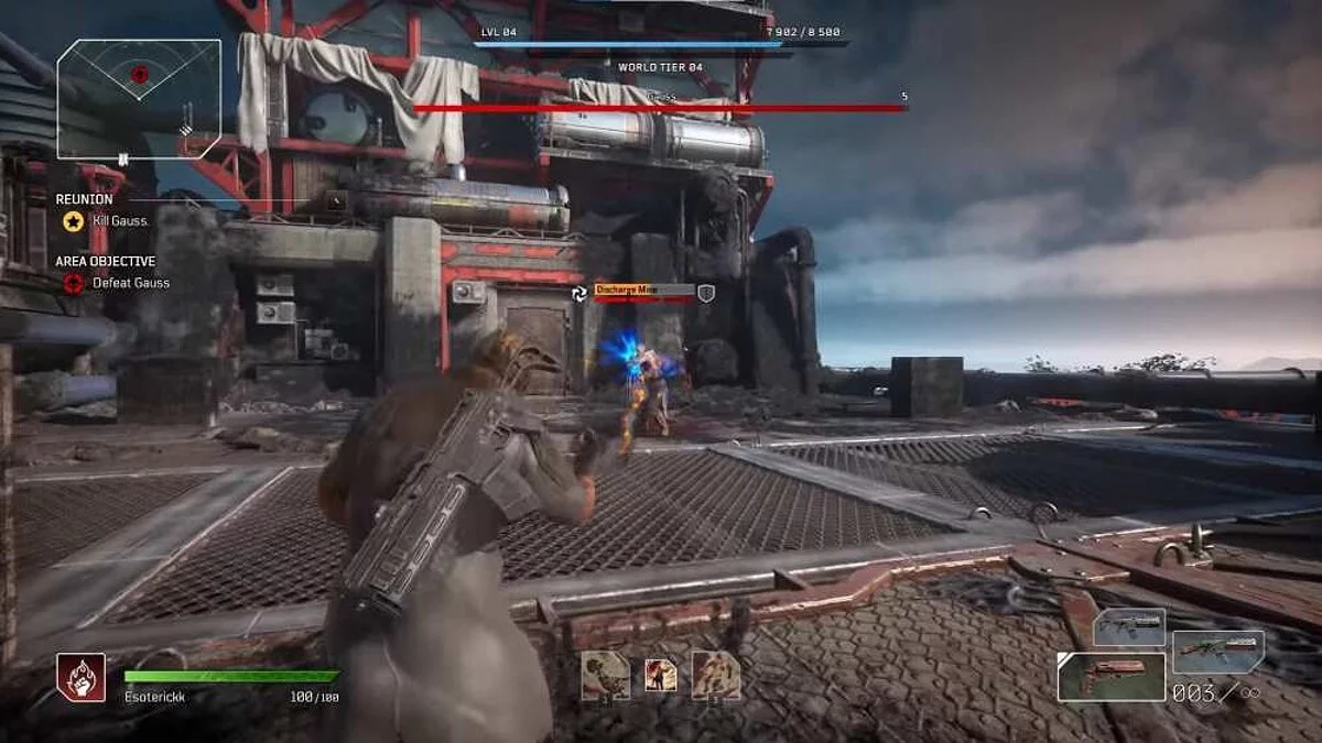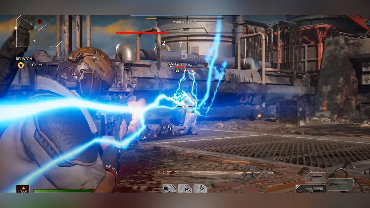 Когда вы не мешаете боссу, стреляйте в него с безопасного расстояния. У Гаусса есть пушка, которая стреляет молниями, нанося серьёзные повреждения с близкого расстояния. Время от времени он телепортируется, чтобы сбежать от вас или подобраться поближе, но это не должно быть проблемой, если вы будете постоянно двигаться и прятаться за укрытиями.
