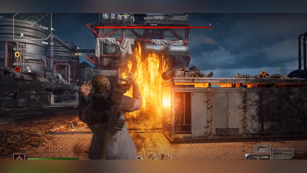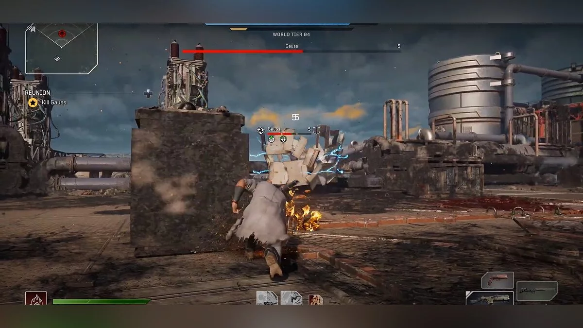 Именно в башне вы встретитесь лицом к лицу с первым главным боссом в Outriders — Гауссом. Гаусс такой же Измененный, как и вы, а это значит, что он обладает сверхъестественными способностями. Все его атаки связаны с электричеством.