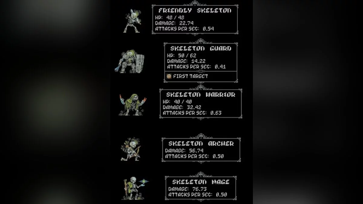 Некромант призывает скелетов, которые сражаются вместо него. Количество и сила скелетов зависит от экипировки и навыков хозяина.
