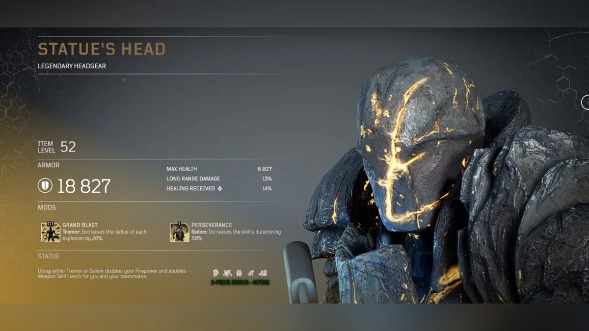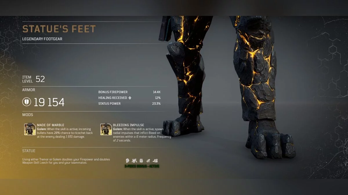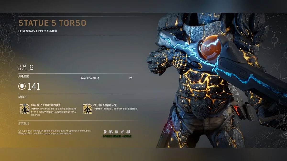 В качестве дополнительного набора можно воспользоваться комплектом брони «Статуя» (Statue Armor Set), которая удваивает вытягивание жизни из противников и увеличивает огневую мощь героя при использовании навыков «Дрожь» (Tremor) и «Голем» (Golem).