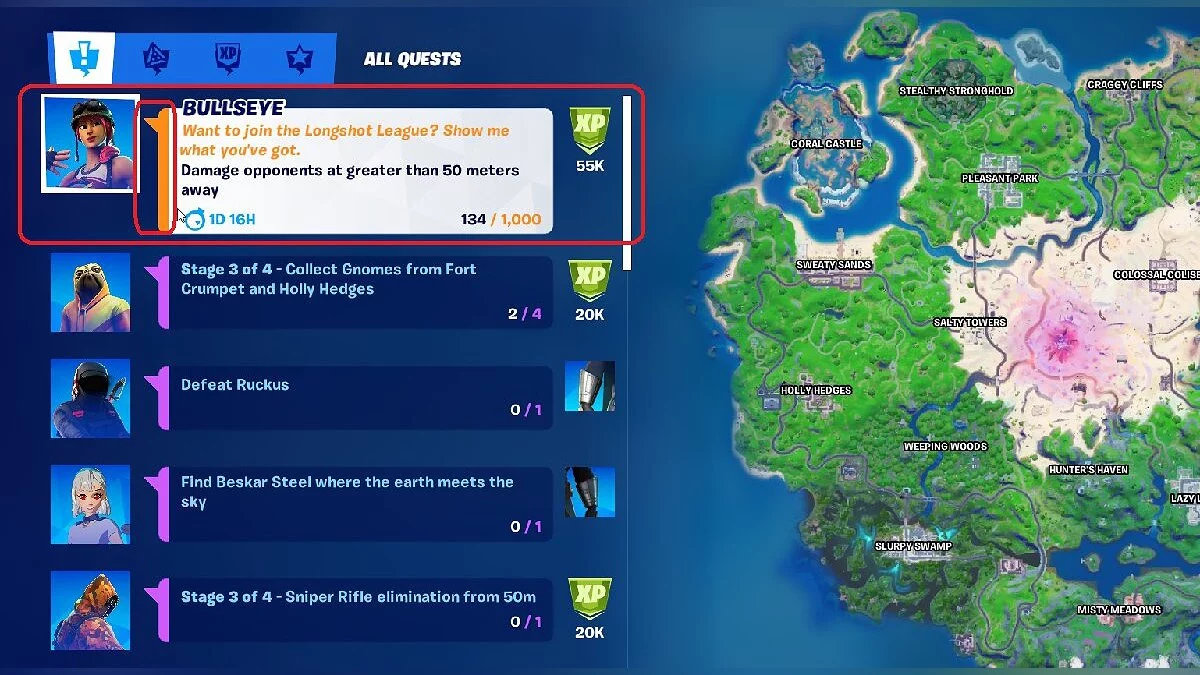 - Завершите необычные или редкие квесты (6) — 100 В-баксов;