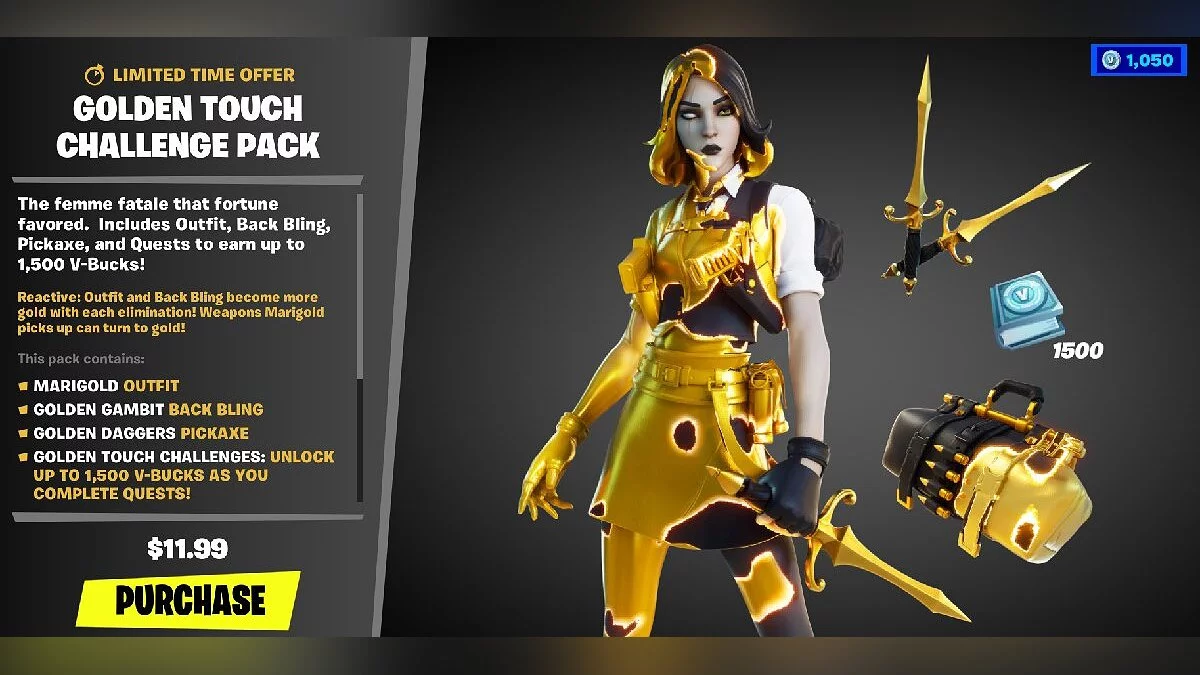 Мидас был одним из самых популярных скинов за всё время существования Fortnite и было очевидно, что его женский вариант рано или поздно появится. В этом гайде мы расскажем как получить скин Златы (Marigold) — женской версии Мидаса, и что входит в новый набор испытаний.
